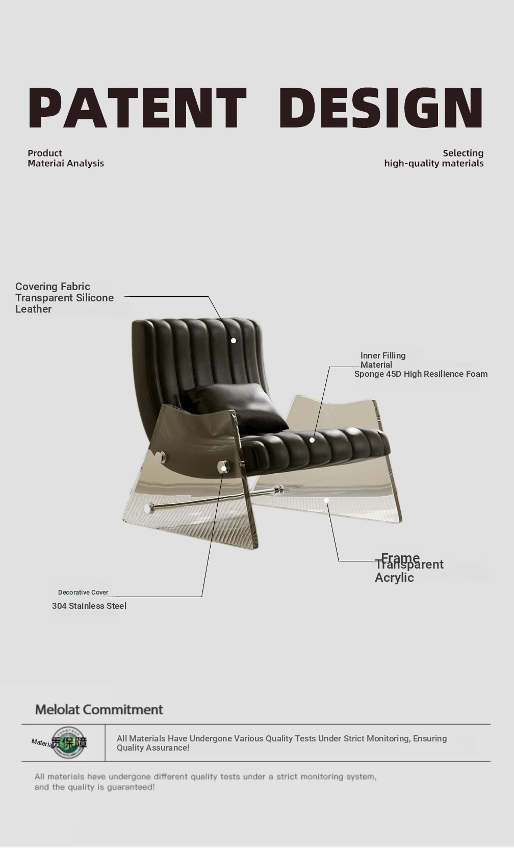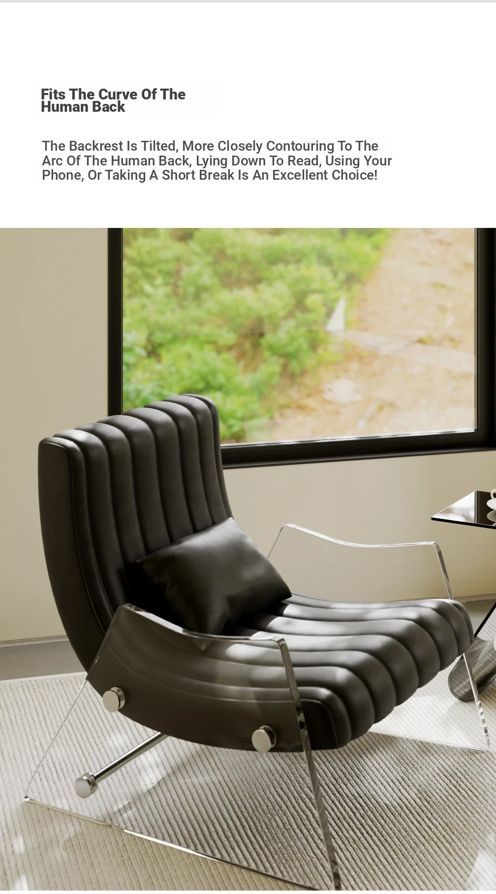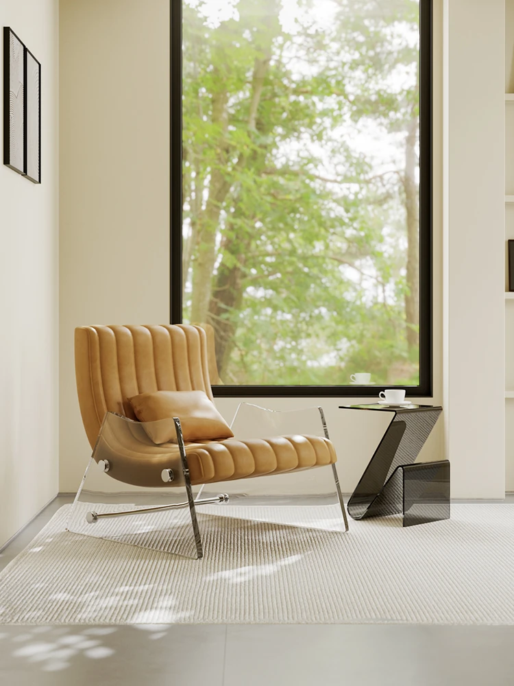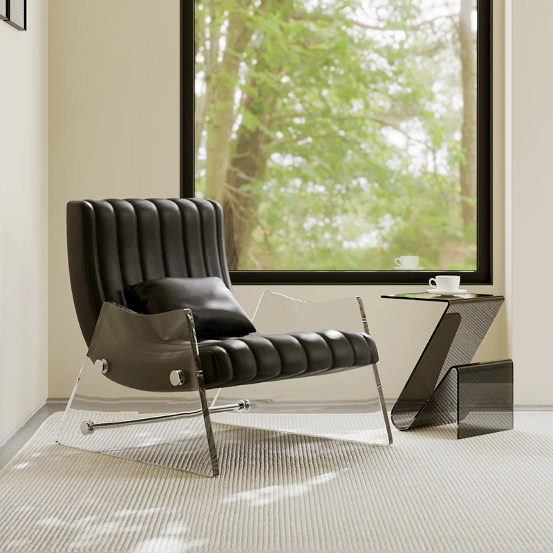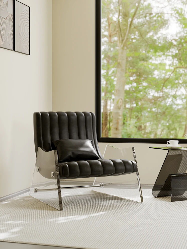 Elegant Transparent Acrylic Floating Single Sofa - High-End Leather Recliner for Bedroom and Living Room, Designer Lounge Chair