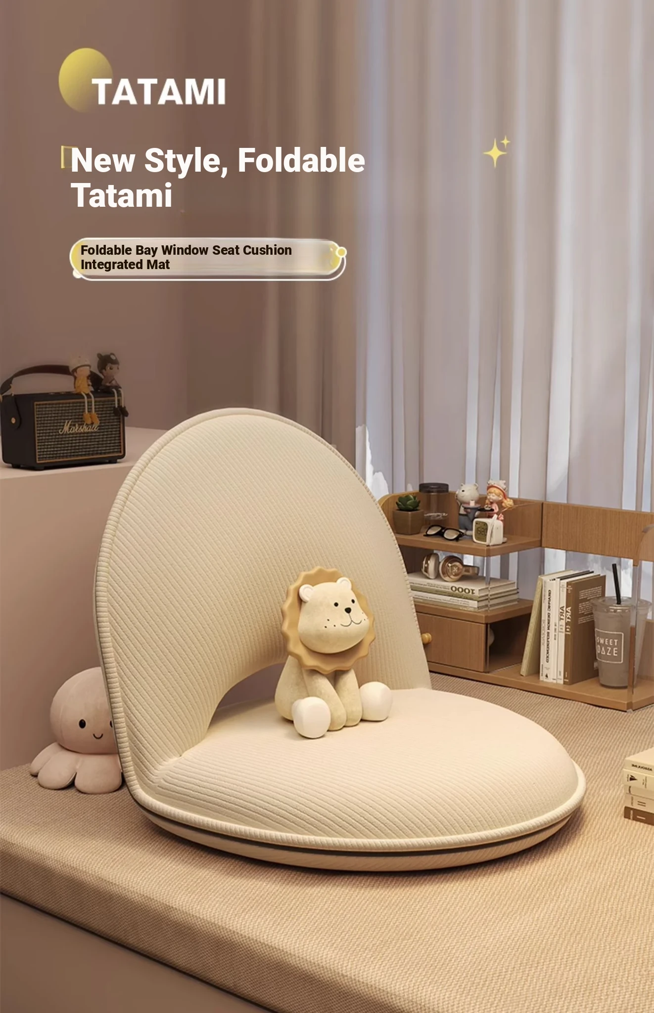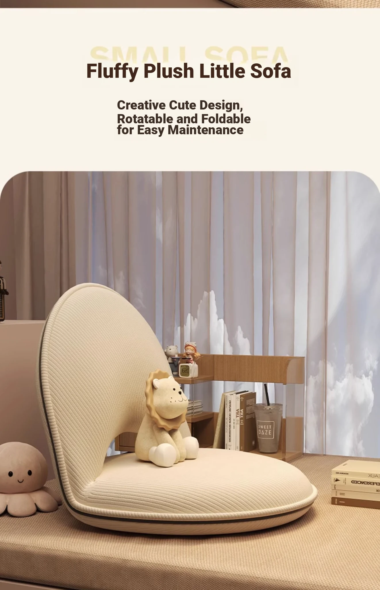 Foldable Rotating Single Sofa Chair for Living Room - Perfect for Bay Windows and Tatami, Ideal for Home Use as a Cozy Backrest Chair for Bed or Relaxation.