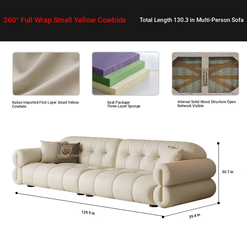 [90% large area first layer small yellow cowhide] more than 129.92 ins