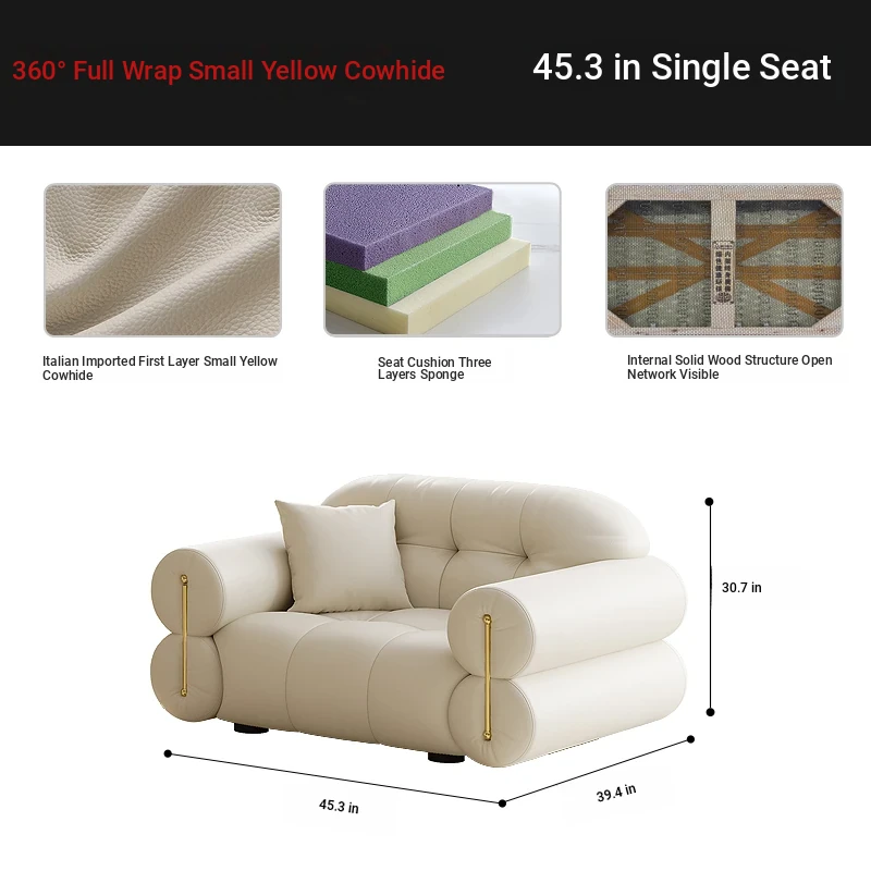 [360 full wrap top layer small yellow cowhide] 45.28 ins single position