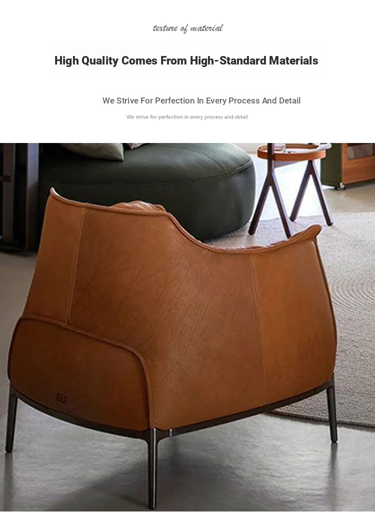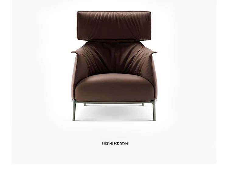 Italian Minimalist Genuine Leather Armchair - Poltrona Designer Lounge Chair for Relaxation and Conversations, Perfect for Living Room and Home Use, Stylish Single Sofa Chair.