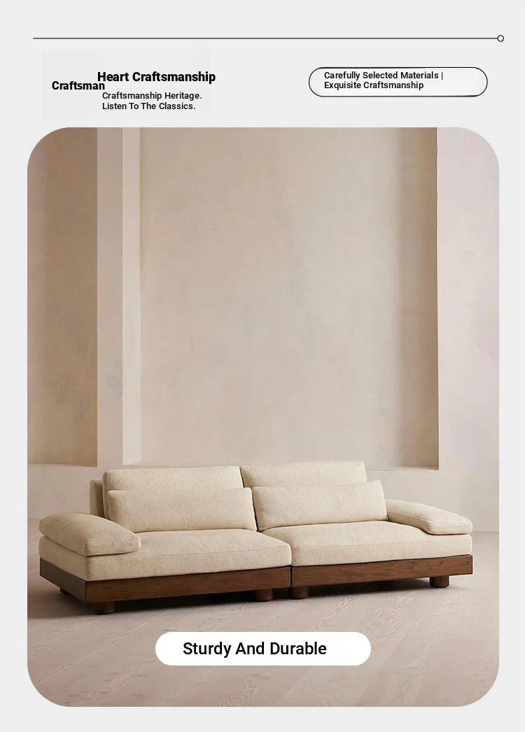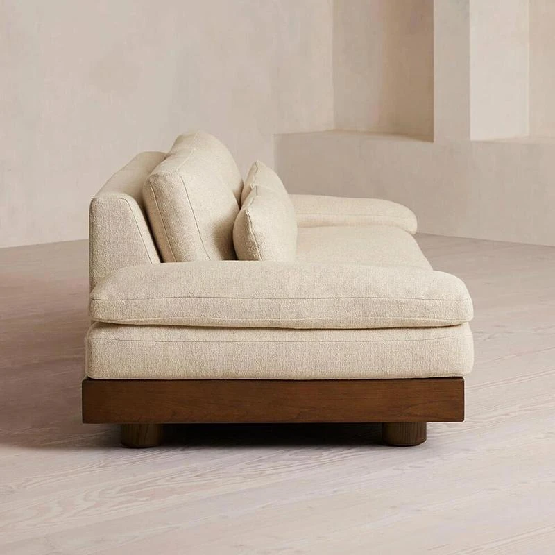 Italian Minimalist Solid Wood Fabric Three-Seater Sofa for Villas and Clubhouses - New Chinese Style Elegance