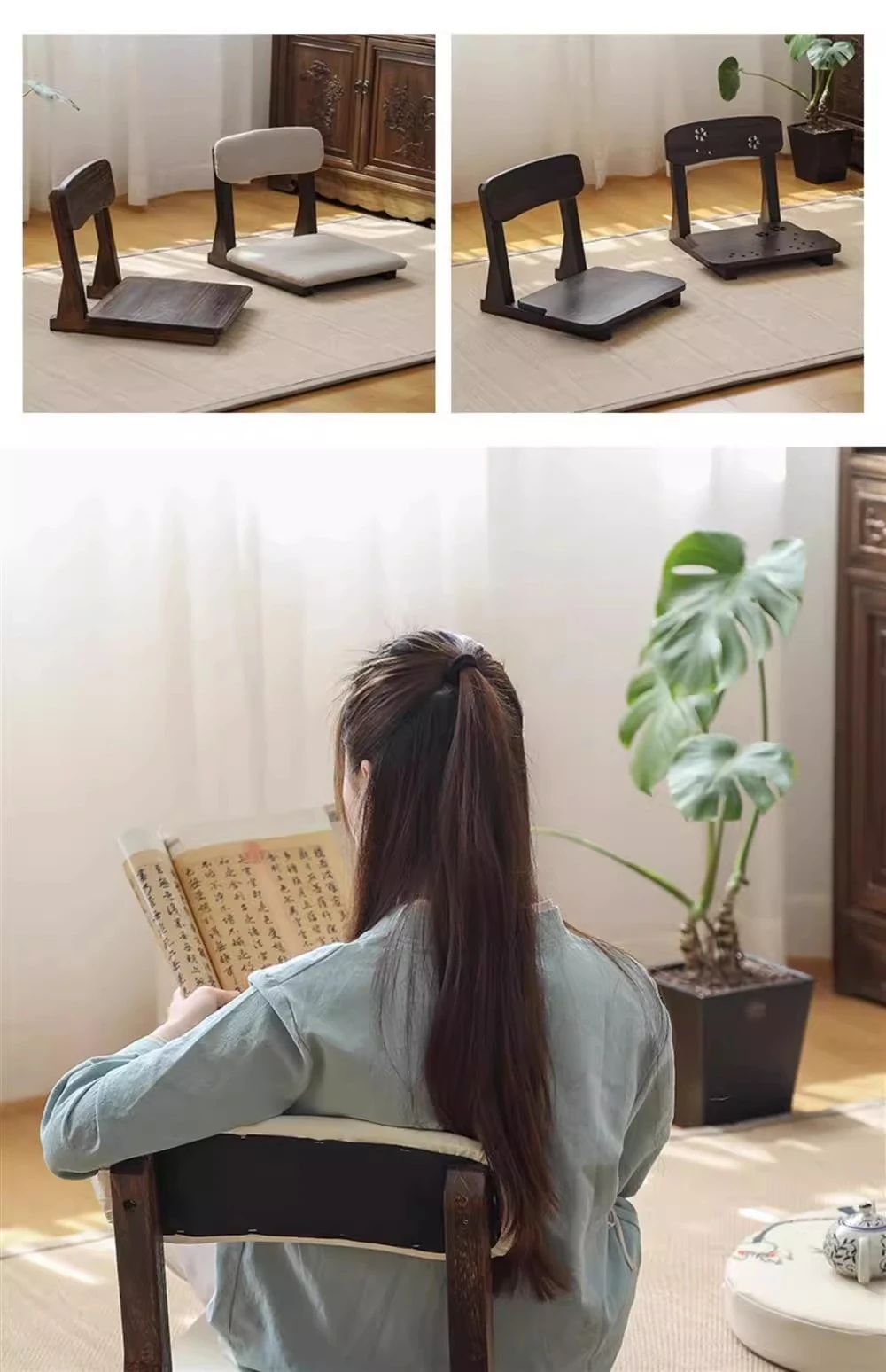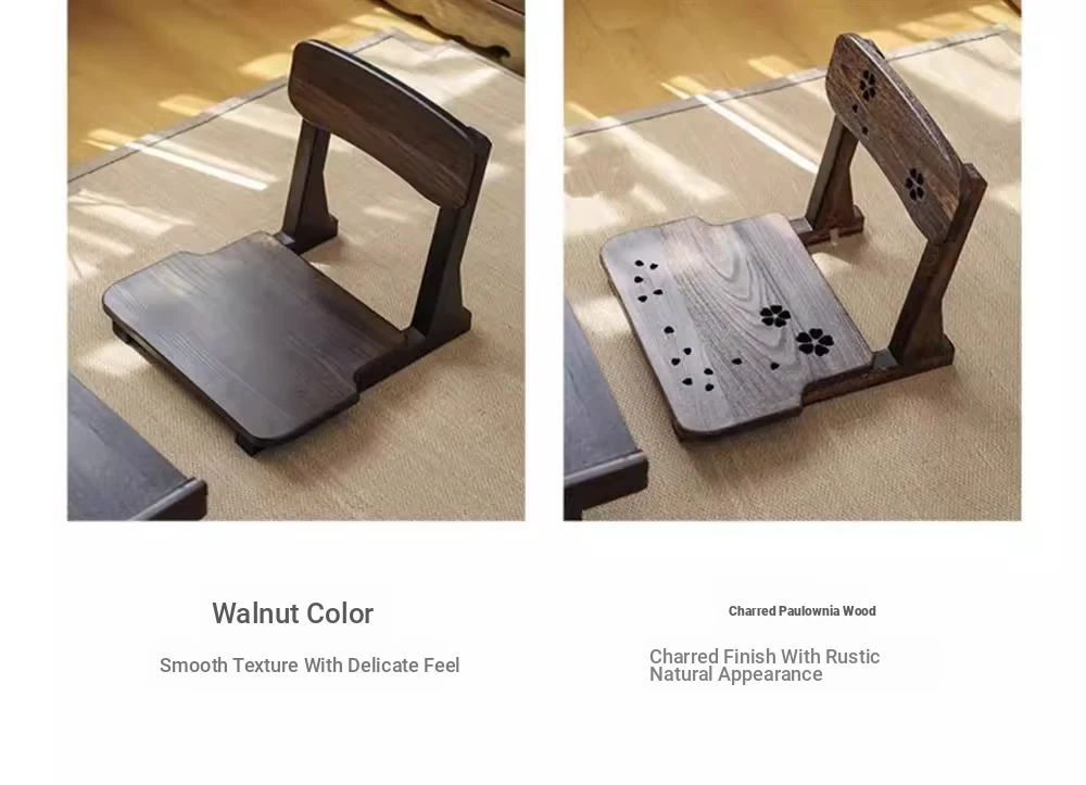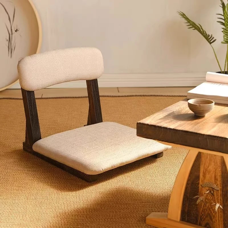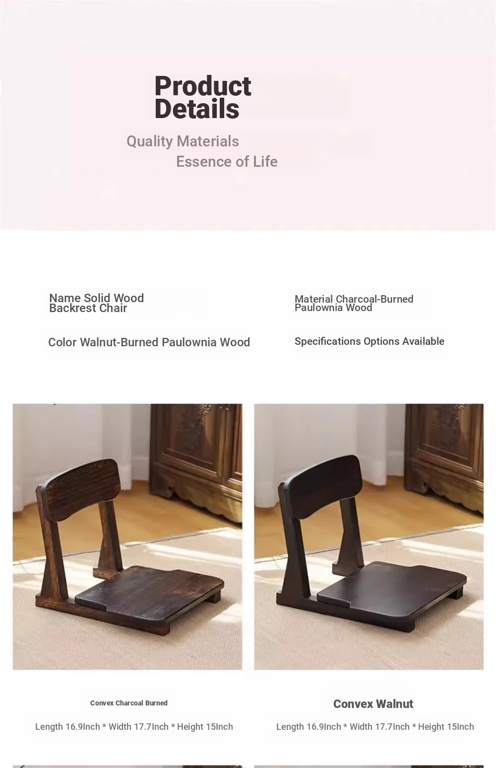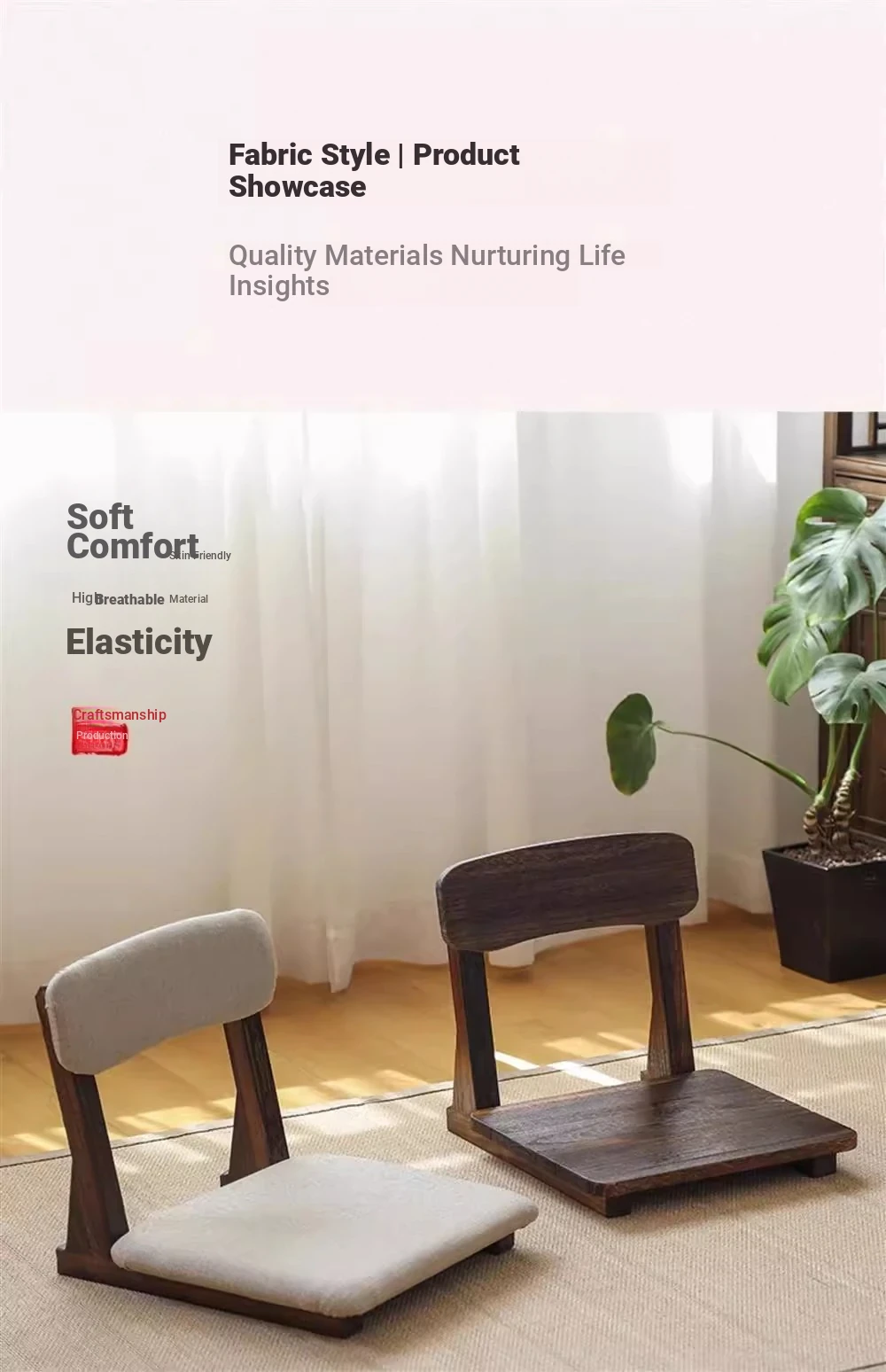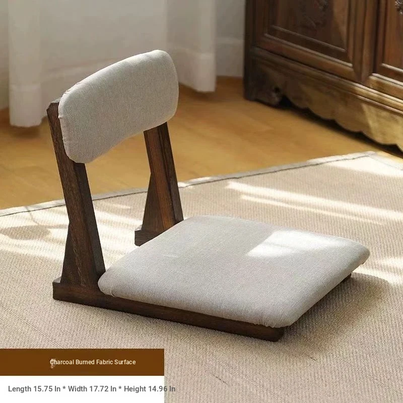 Japanese Style Solid Paulownia Wood Bay Window Tatami Lazy Chair - Compact, Legless Soft Cushion Stool for Home and Balcony Use