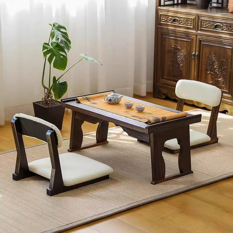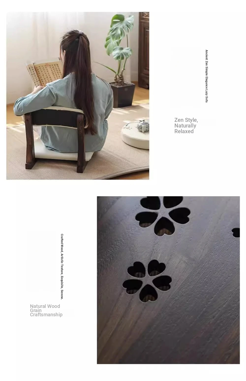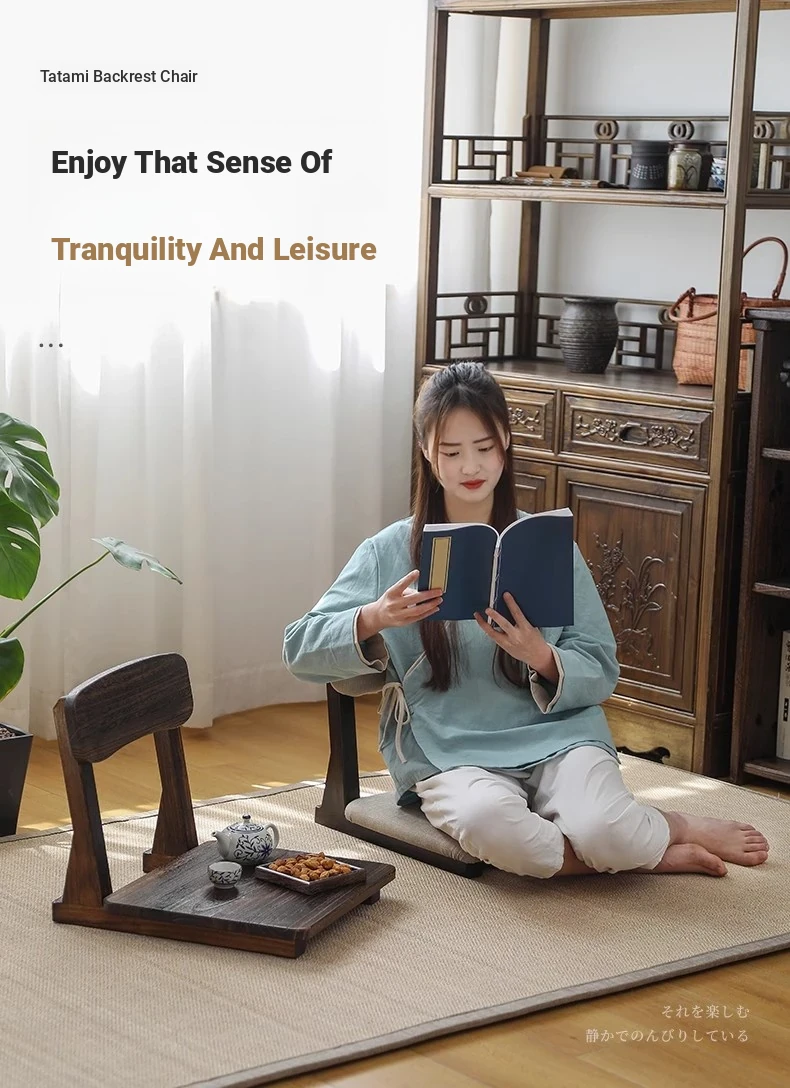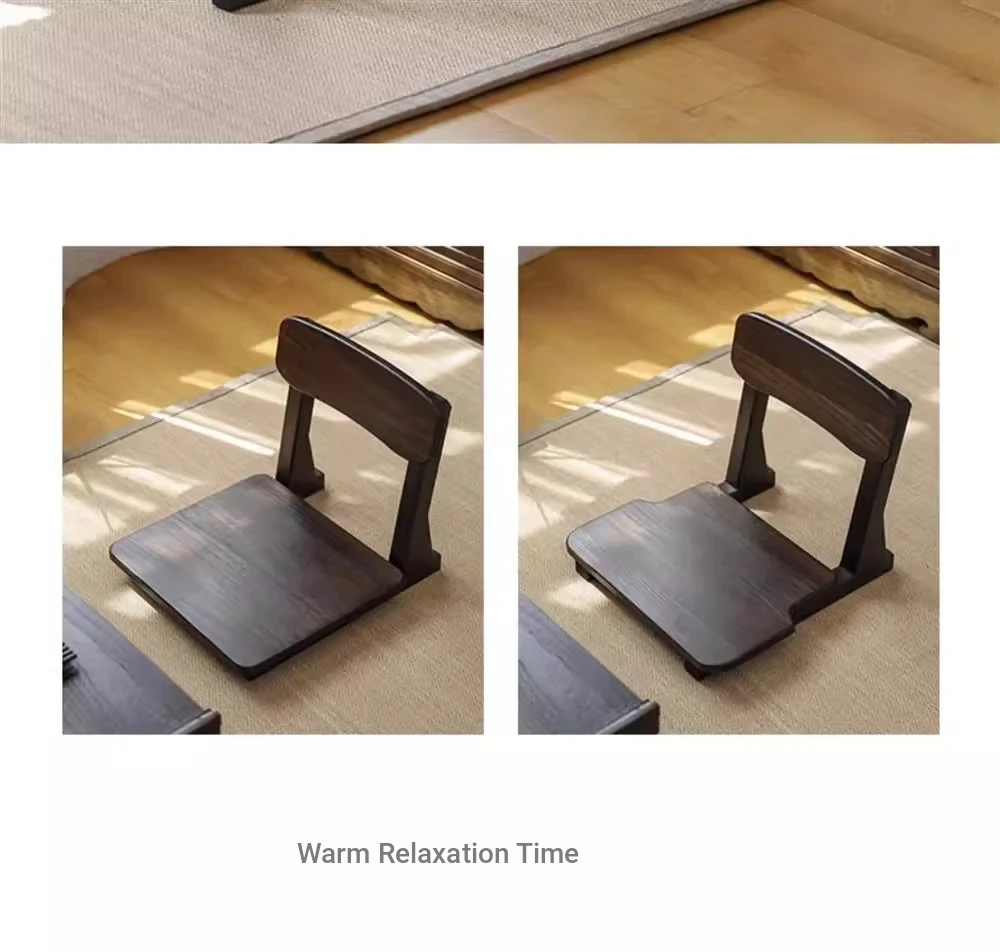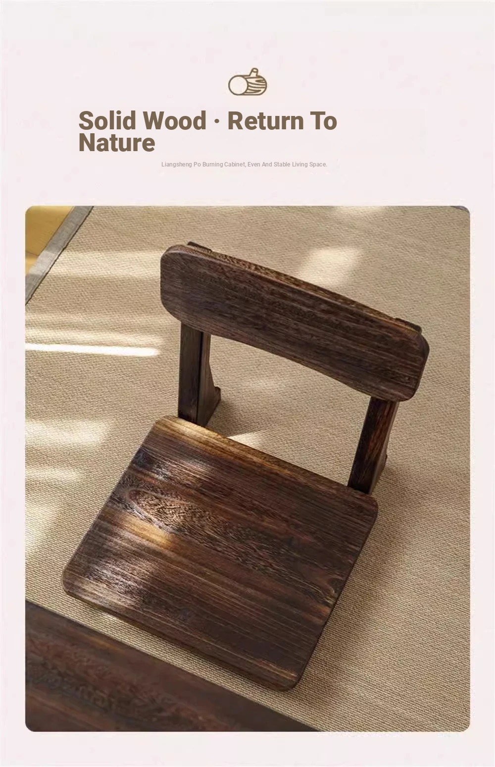 Japanese Style Solid Paulownia Wood Bay Window Tatami Lazy Chair - Compact, Legless Soft Cushion Stool for Home and Balcony Use