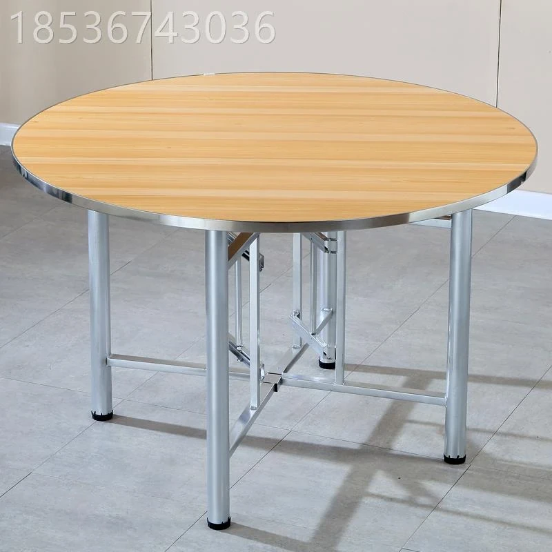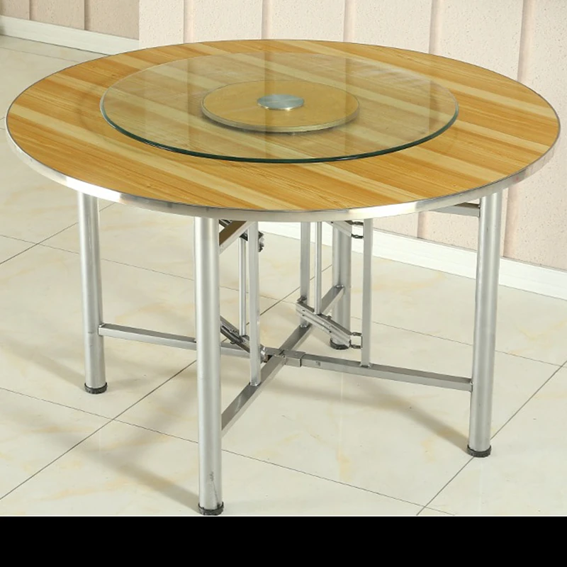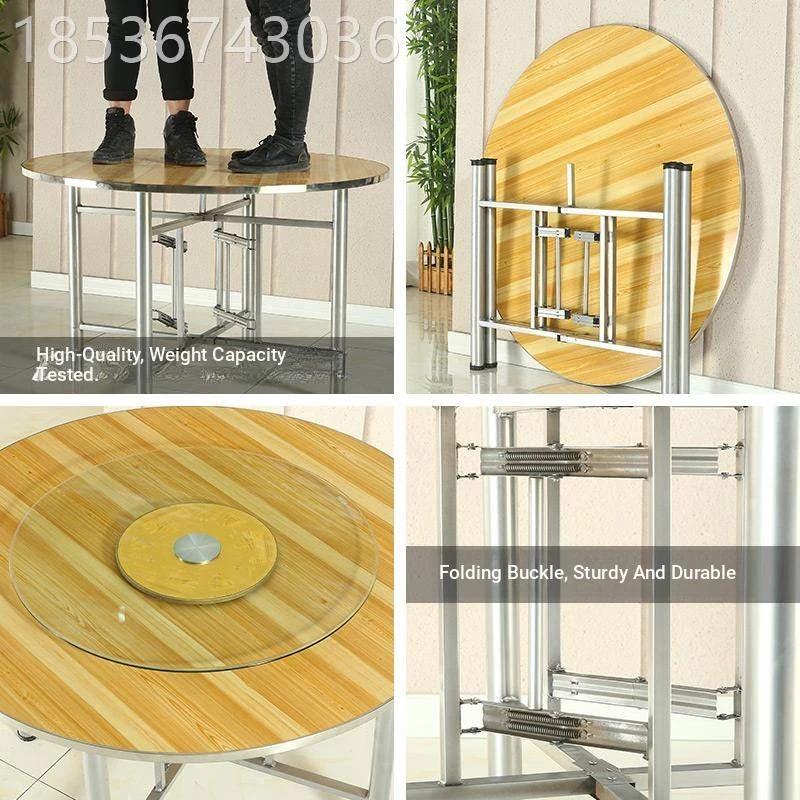 Large Round Folding Dining Table with Glass Lazy Susan - Perfect for Home, Hotels, and Cafes. Ideal for Family Meals and Gatherings.