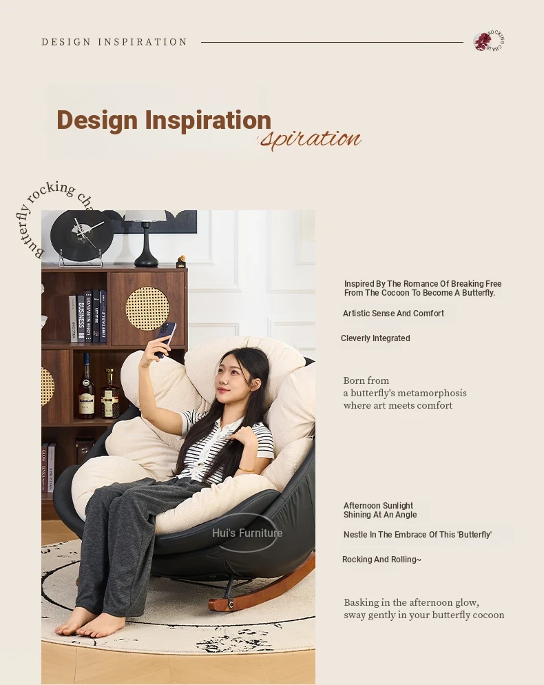 Lazy Butterfly Rocking Chair - Comfortable Single Recliner for Home & Living Room, Perfect for Relaxing on the Balcony or Cozy Nook
