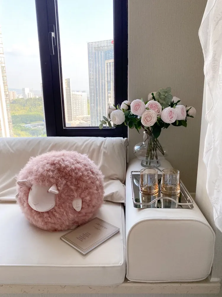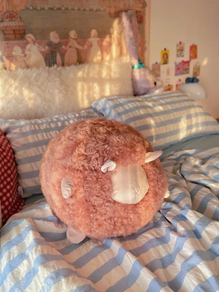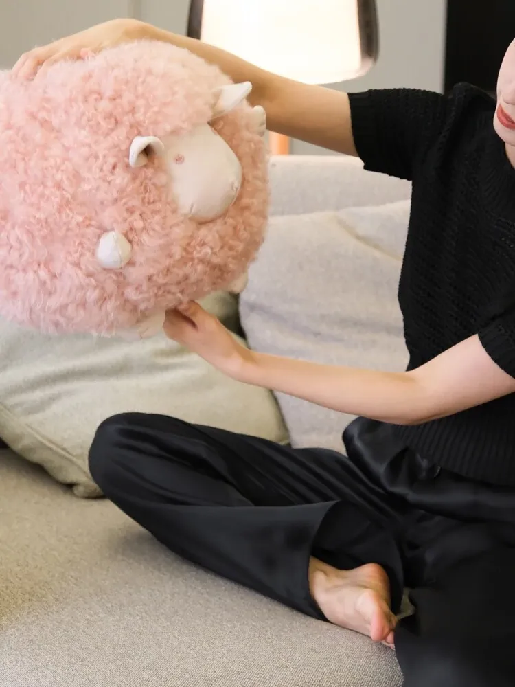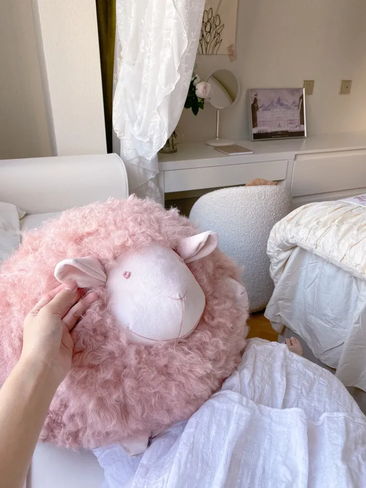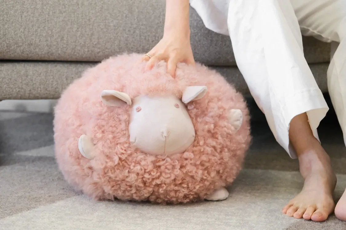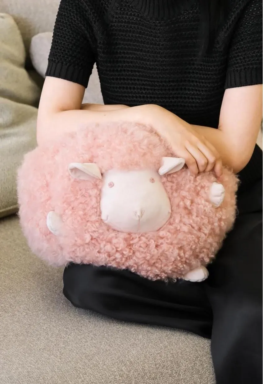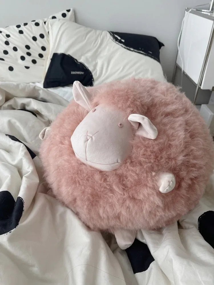 Limited Edition Pink Shaun the Sheep Pillow - Soft Wool Cushion for Comfort and Style, Perfect as a Footrest or Decorative Accent!
