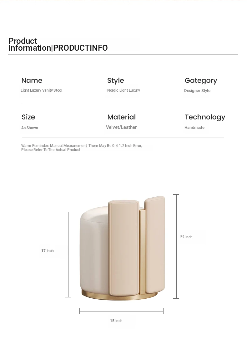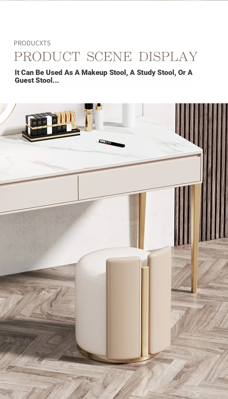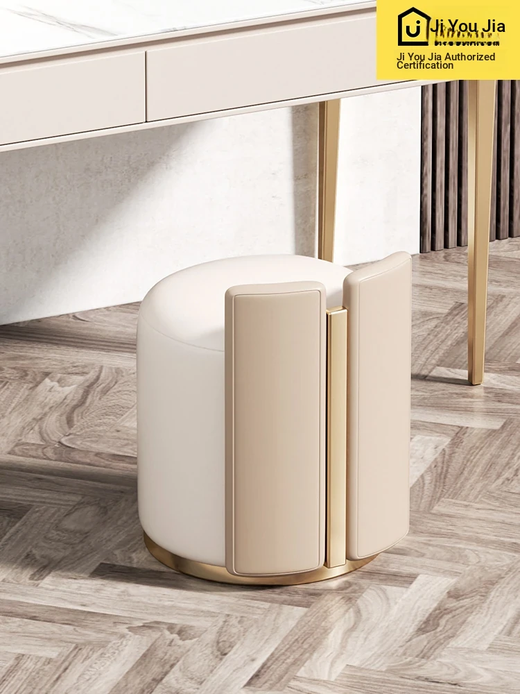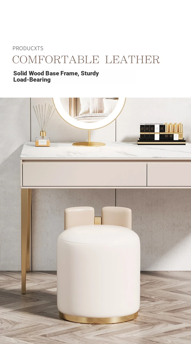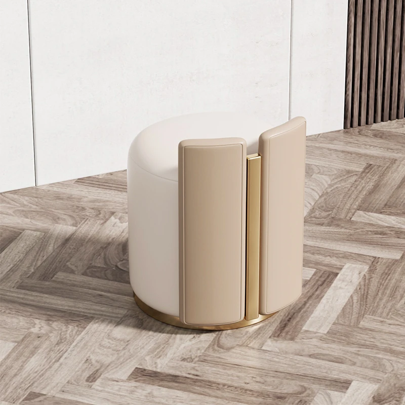 Luxury Modern Dressing Stool for Bedroom and Walk-in Closet - Stylish Round Leather Stool for Living Room and Home Office Use
