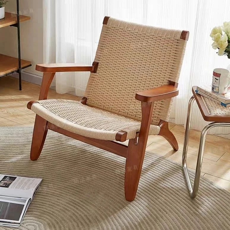 Rubber wood sofa chair + double braided rope + log color