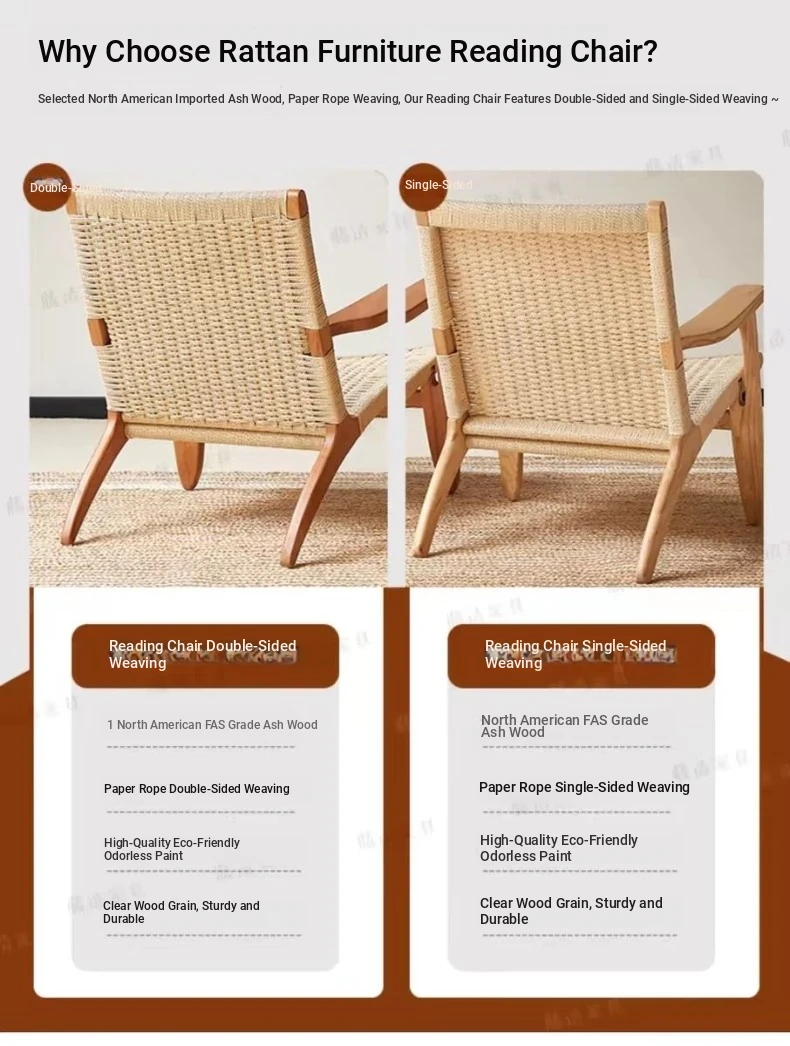 Ash sofa chair + (double braided rope) + cherry wood color