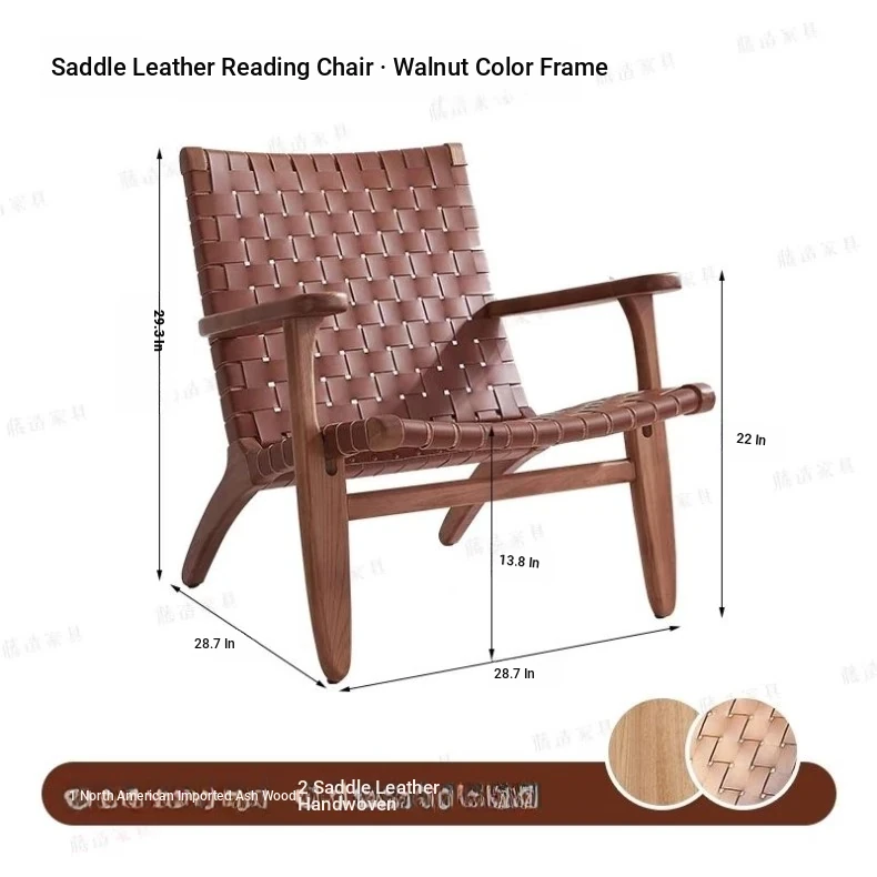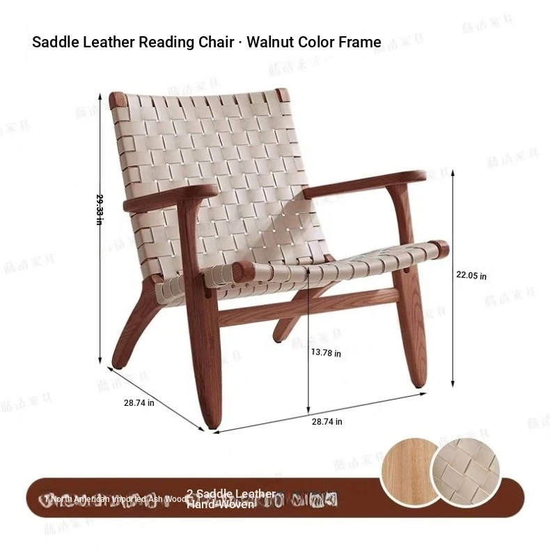 Rubber wood frame + Walnut + Brown saddle skin