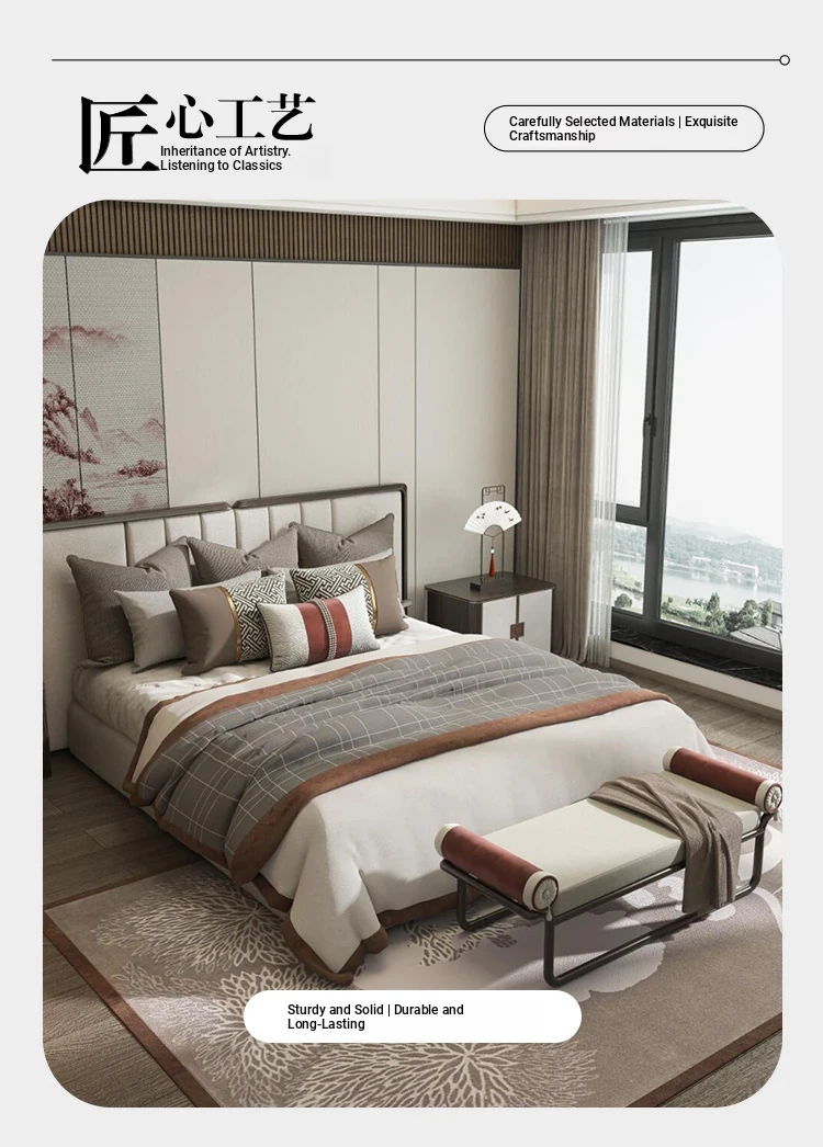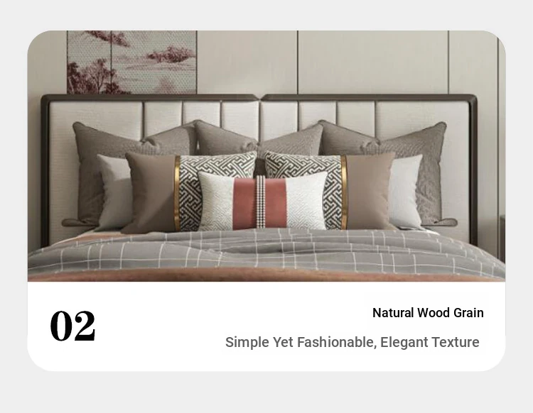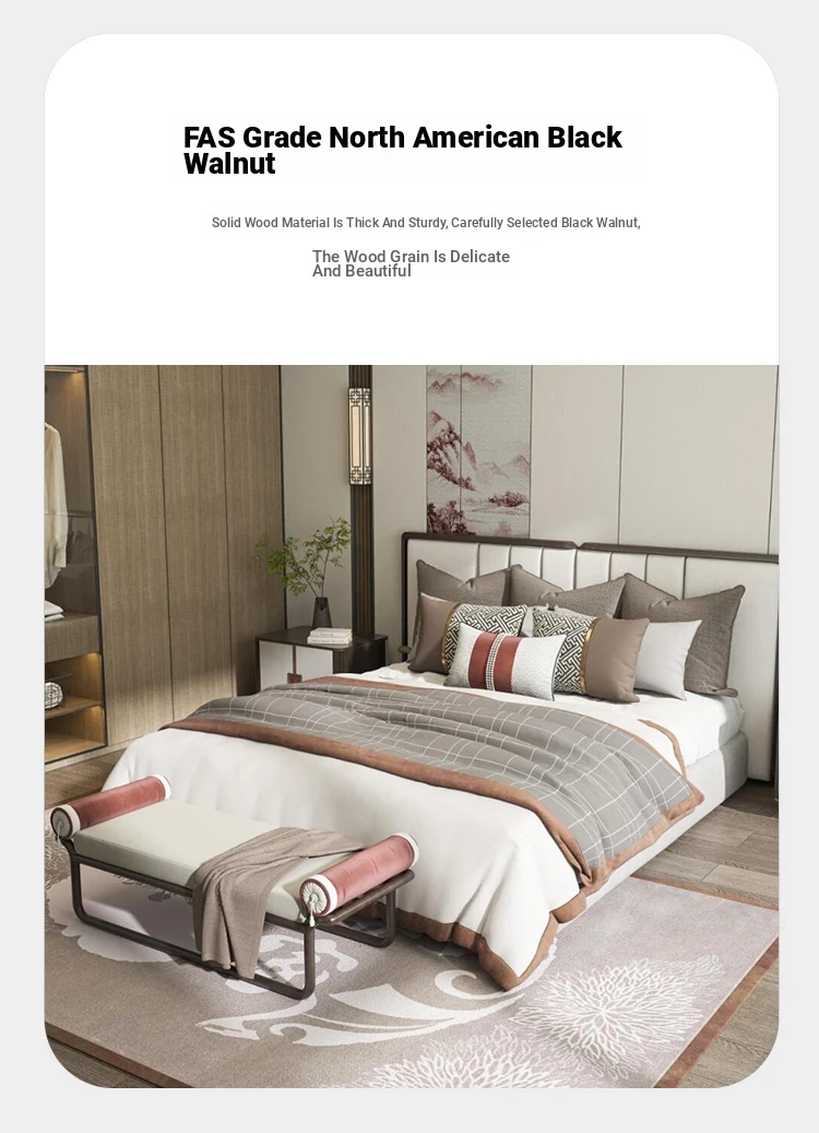 Modern 2025 New Leather Bed for Master Bedroom - 1.8m Soft Package Double Bed with Walnut Wood Frame, Minimalist Luxury Design