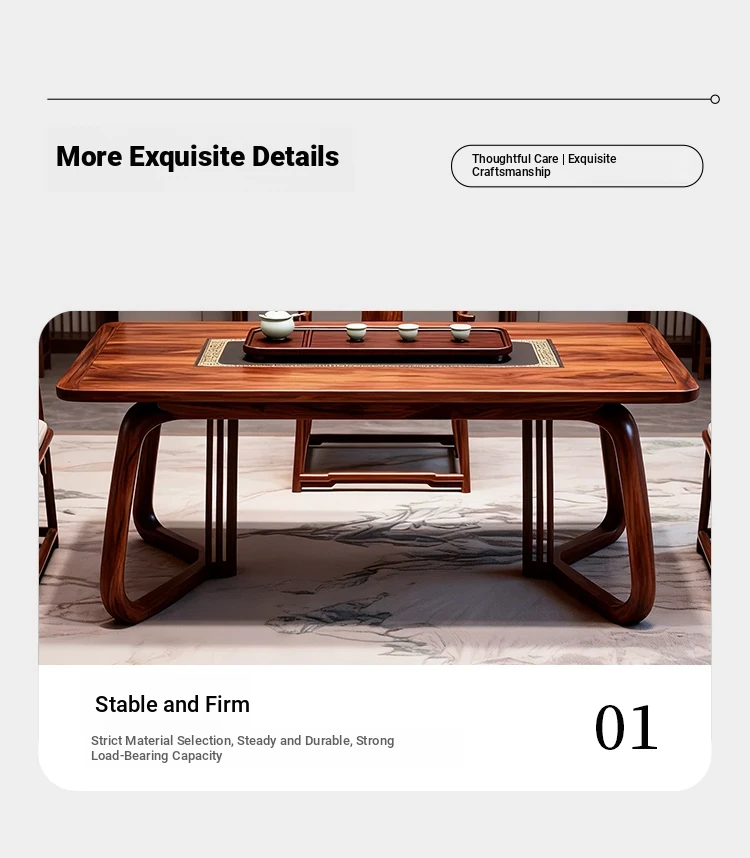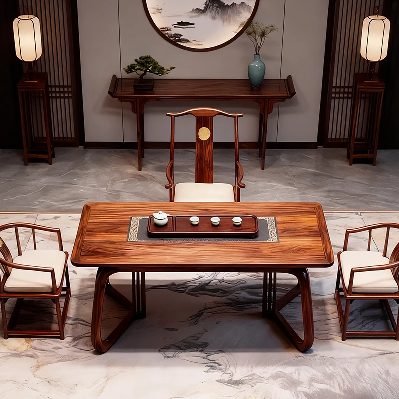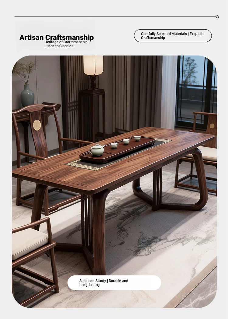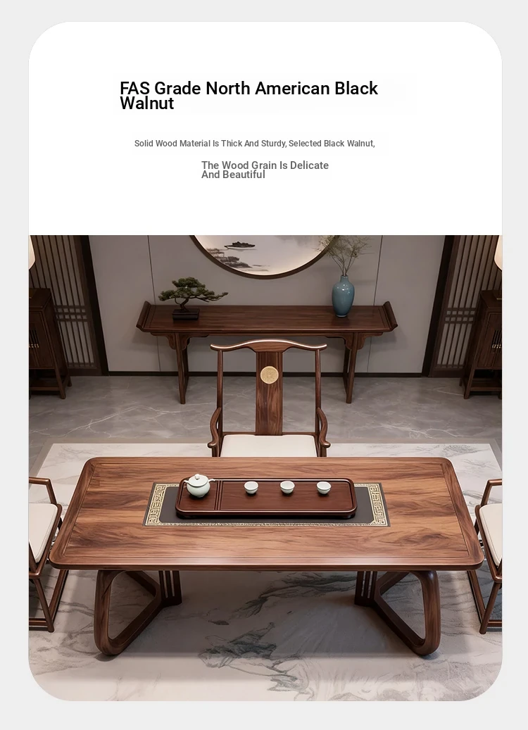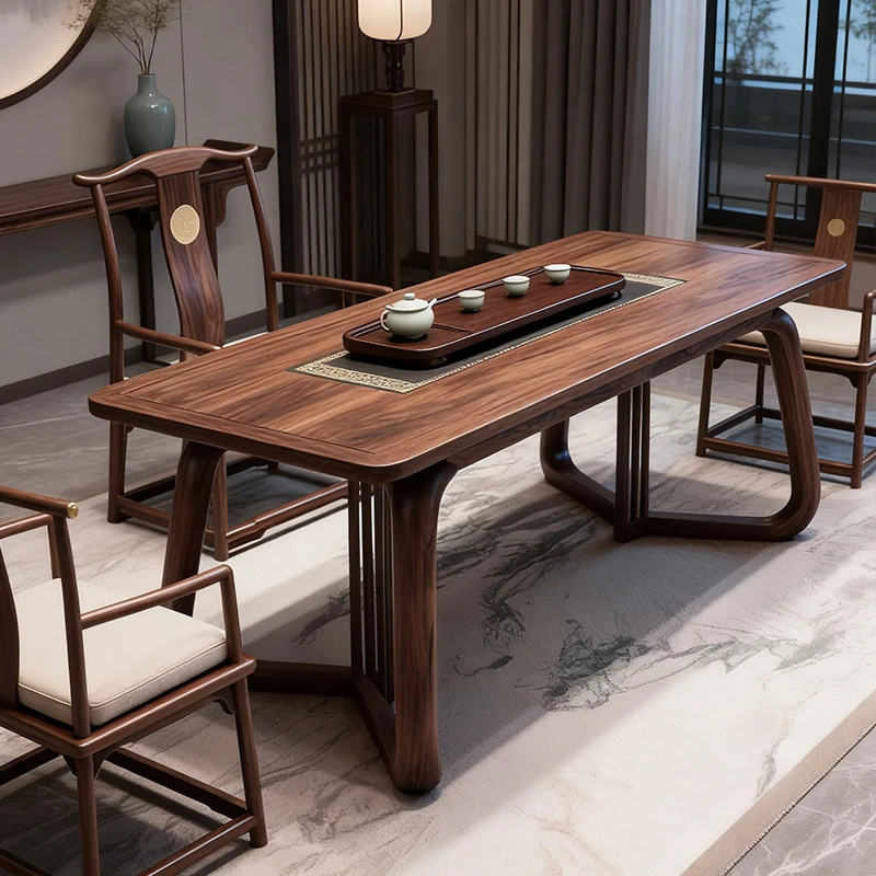 Modern Chinese Style Black Walnut Tea Table - Minimalist Solid Wood Tea Station for Home Living Room, Zen-Inspired High-End Tea Room Centerpiece