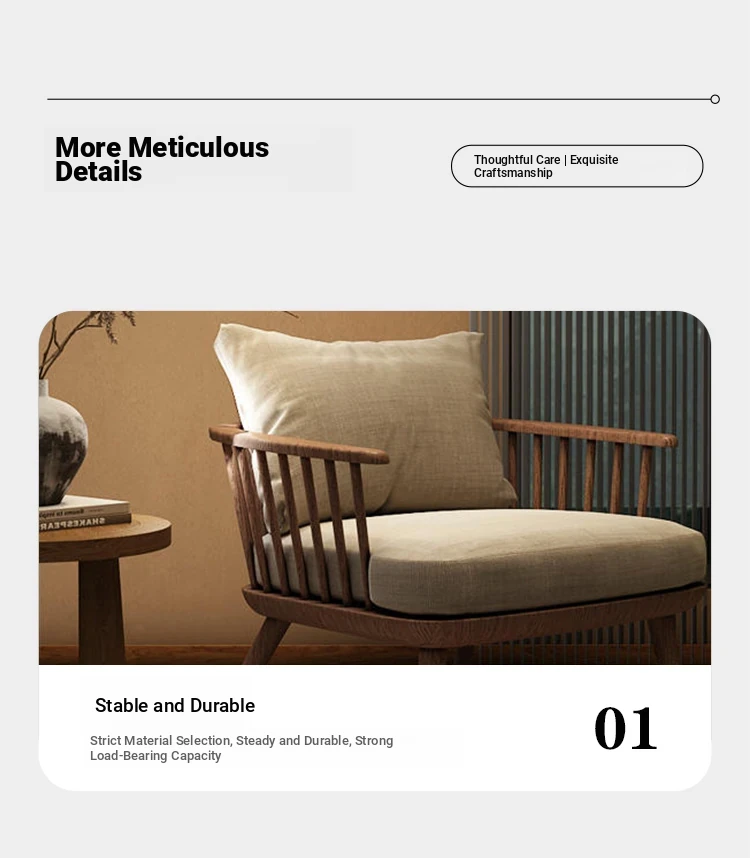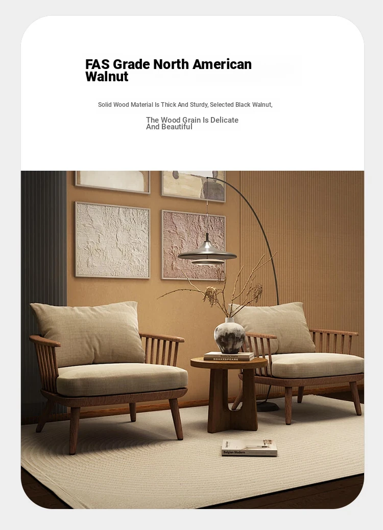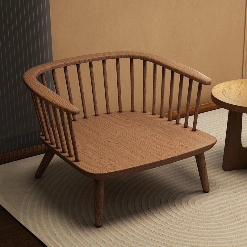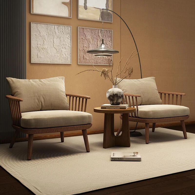 Modern Chinese Style Solid Wood Sofa Chair - Minimalist Design for Living Room, Leisure Seating, Luxury Villa Showroom, Hotel Reception Chair