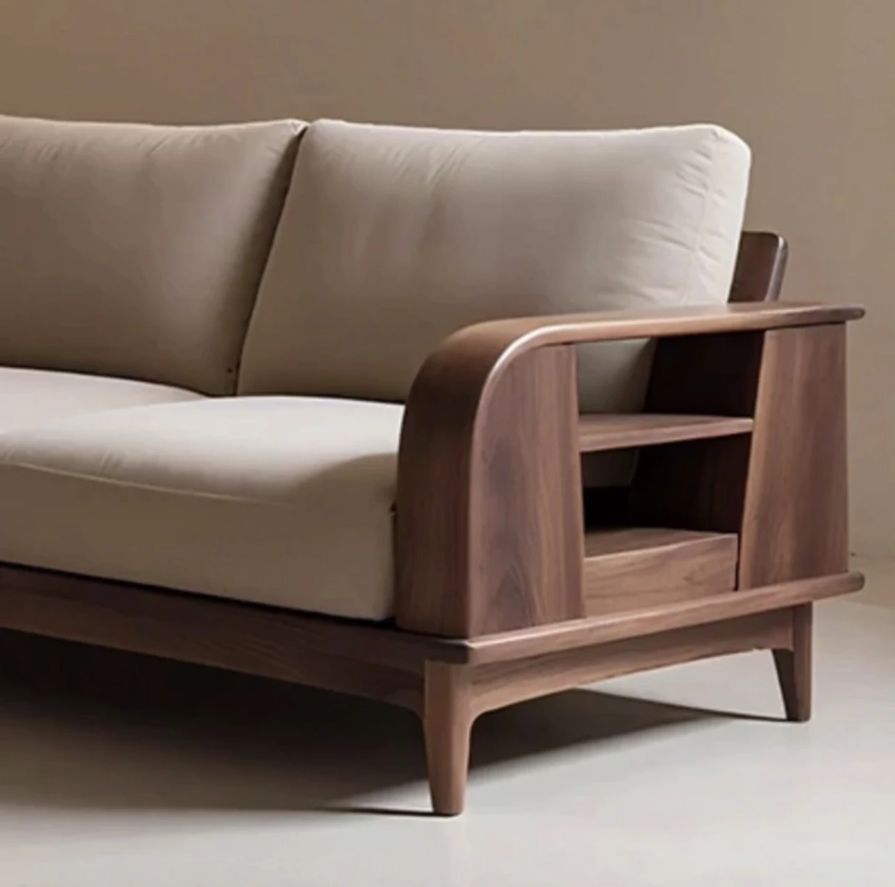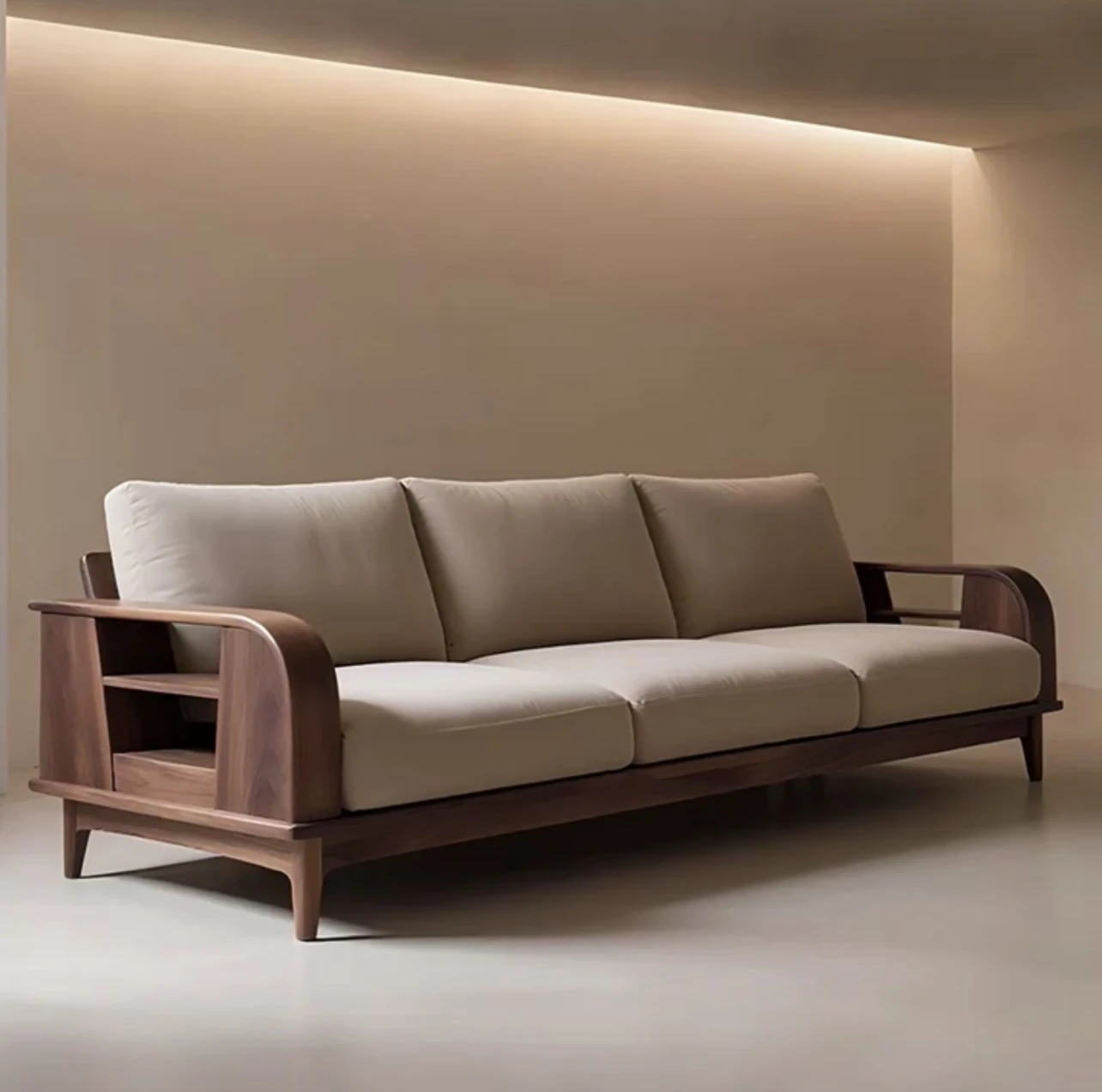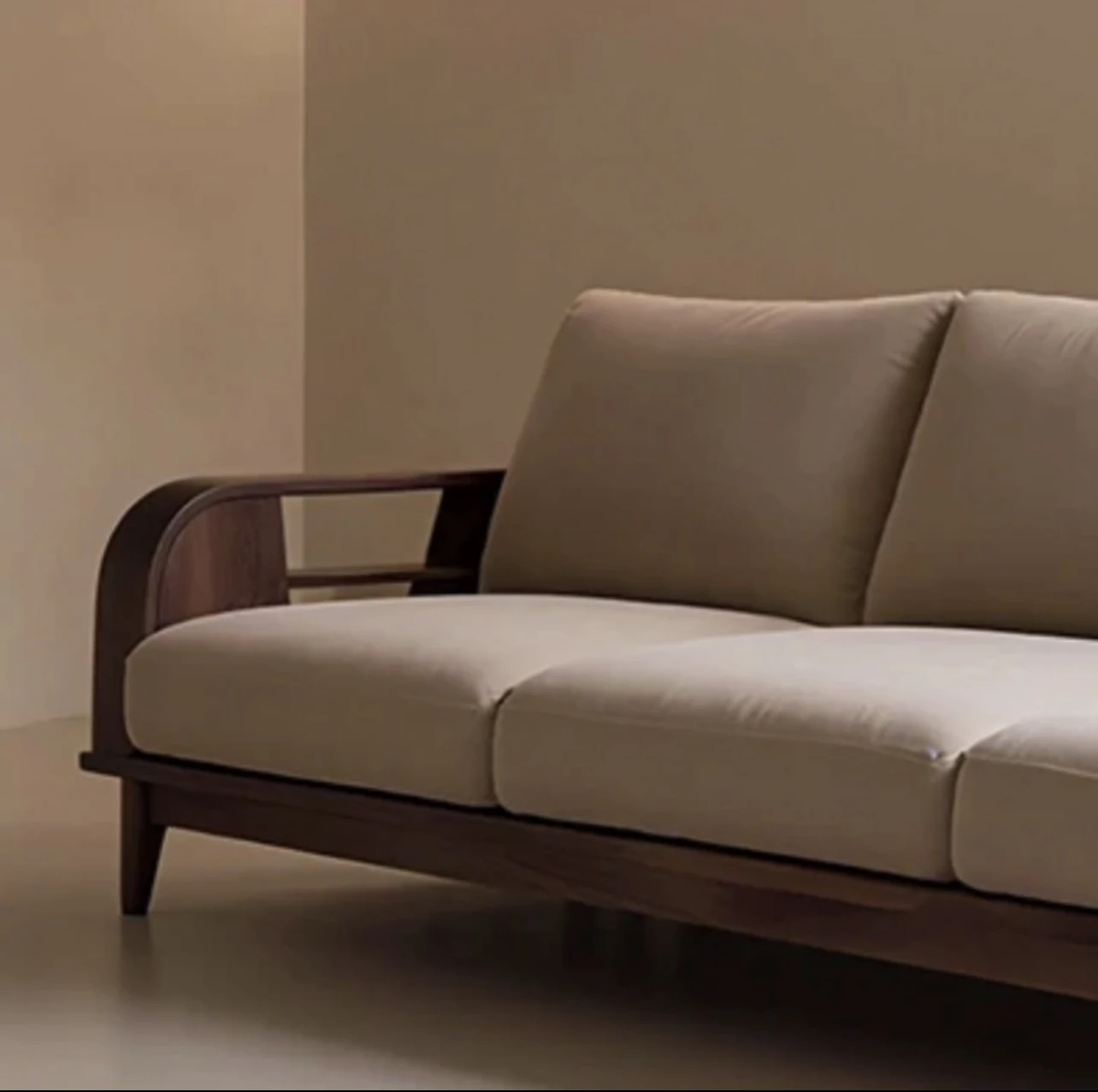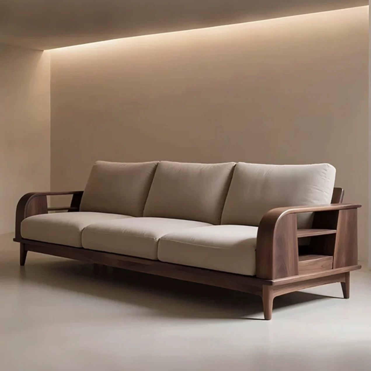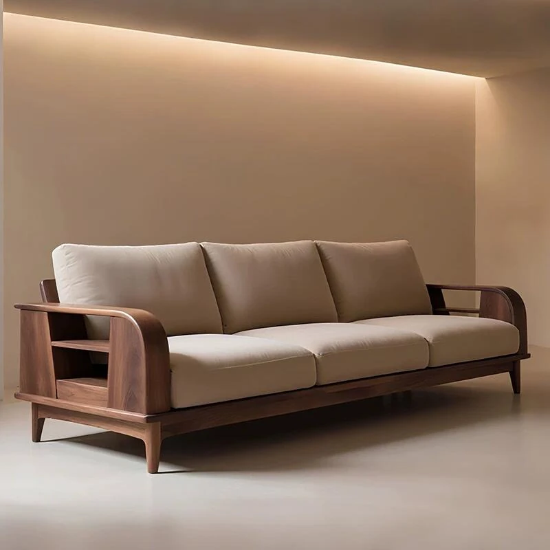 Modern Chinese Style Solid Wood Straight Sofa for Home Living Room - Spacious Walnut Veneer Designer Sofa for Large and Small Apartments
