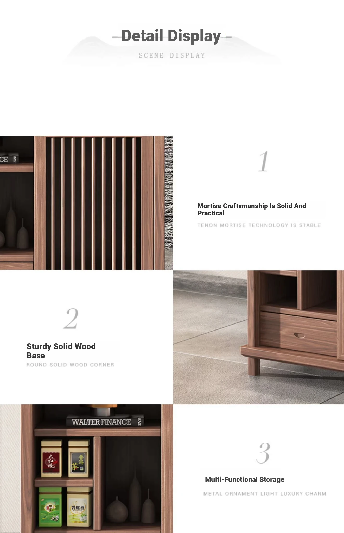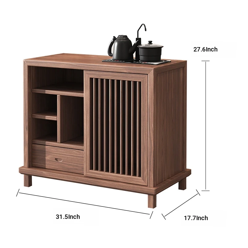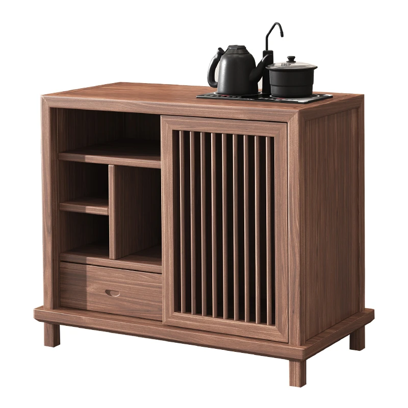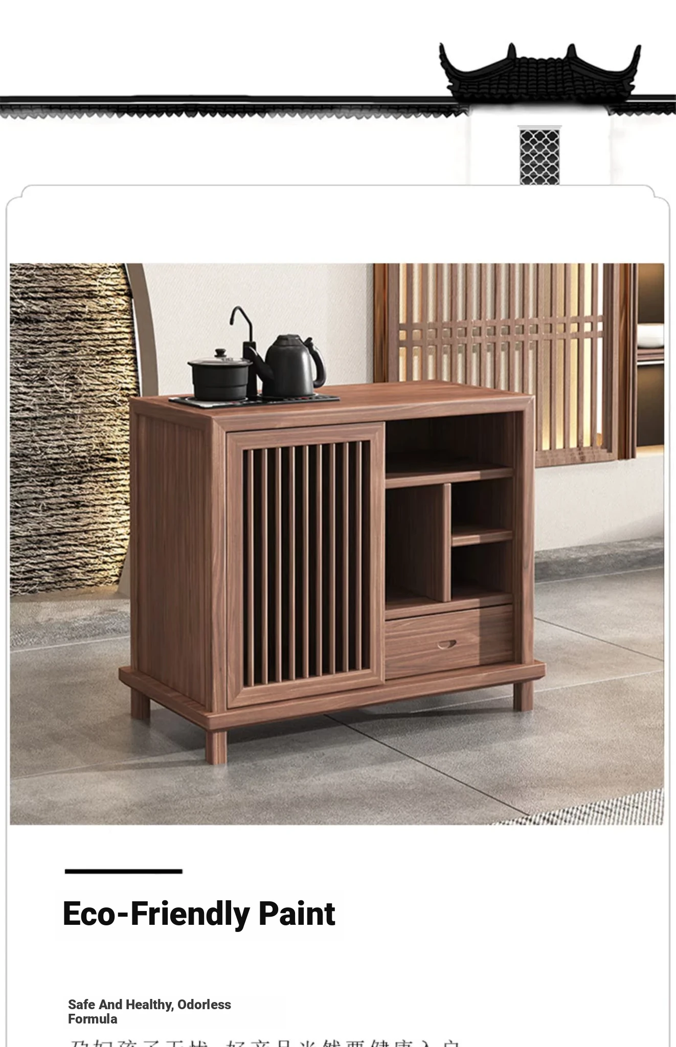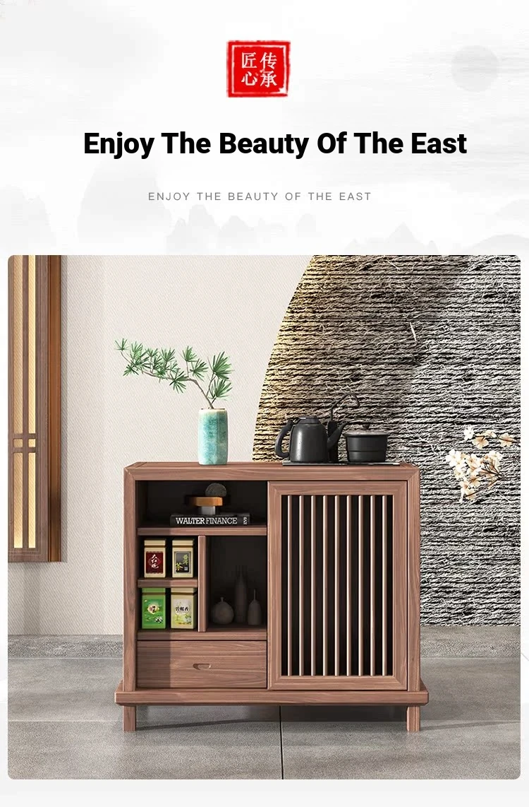 Modern Chinese Tea Cabinet - Wall-Mounted Minimalist Solid Wood Sideboard with Automatic Water Boiler - Stylish Storage Rack for Living Room