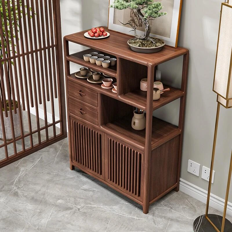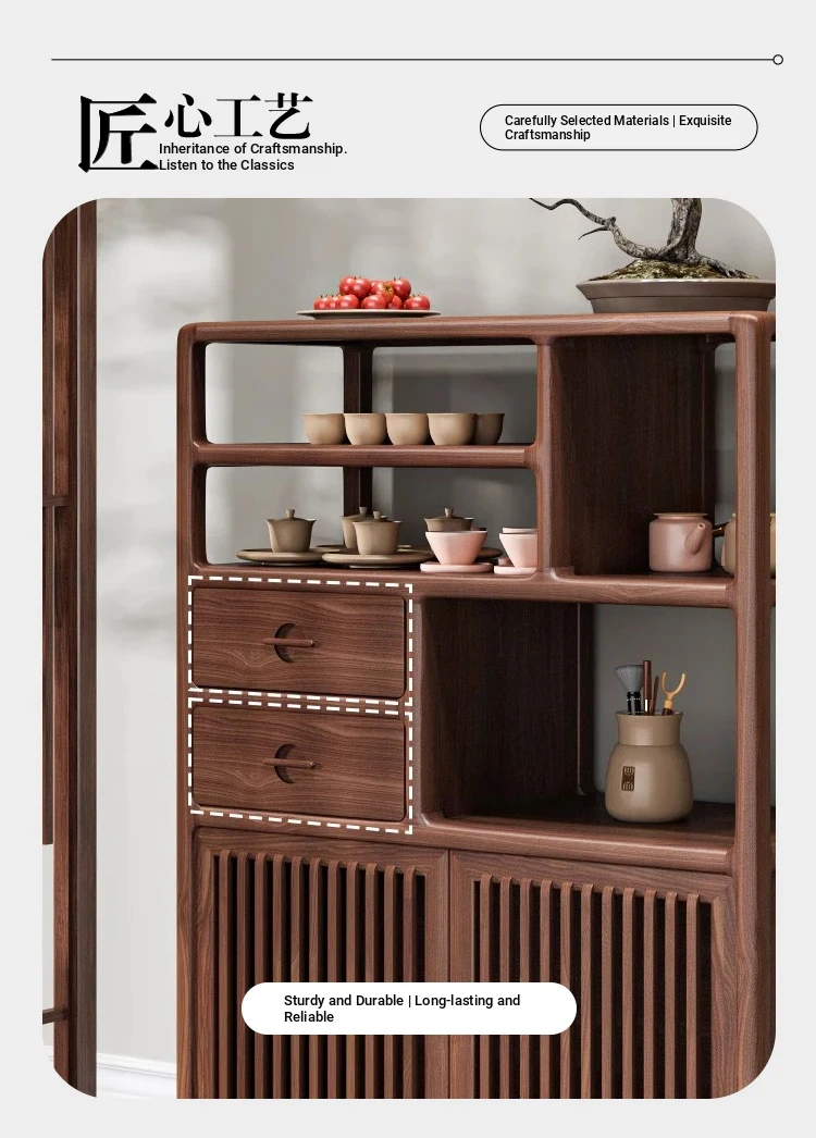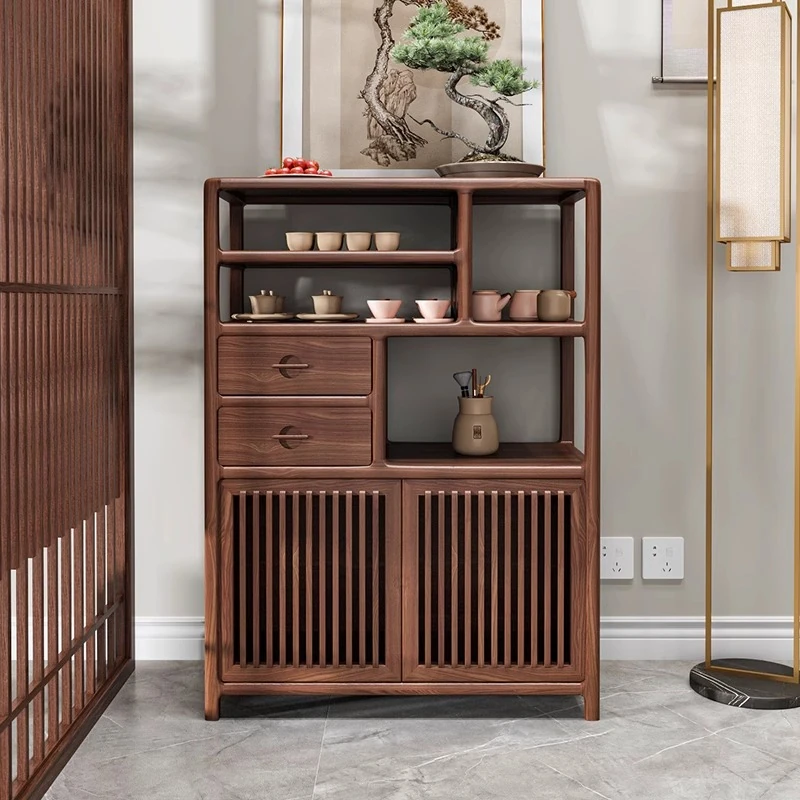 Modern Luxury Solid Wood Entryway Cabinet - Walnut New Chinese Style Storage Sideboard for Dining Room, Perfect for Organizing and Enhancing Your Home Décor