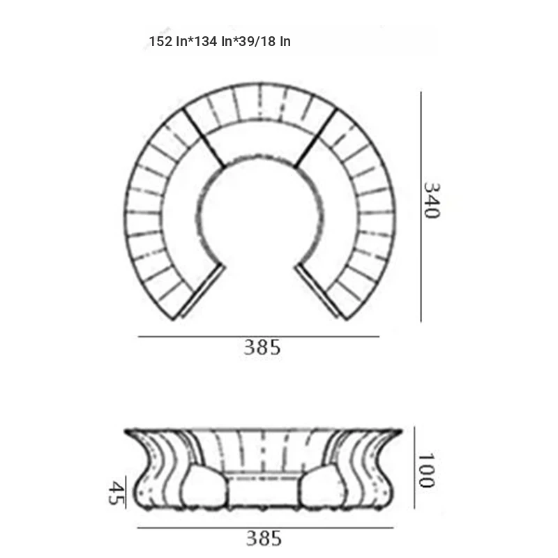 Modern Minimalist Curved Sofa for Offices and Hotel Lobbies - Stylish Half-Round Fabric Couch for Reception Areas, Perfect for Multiple Guests