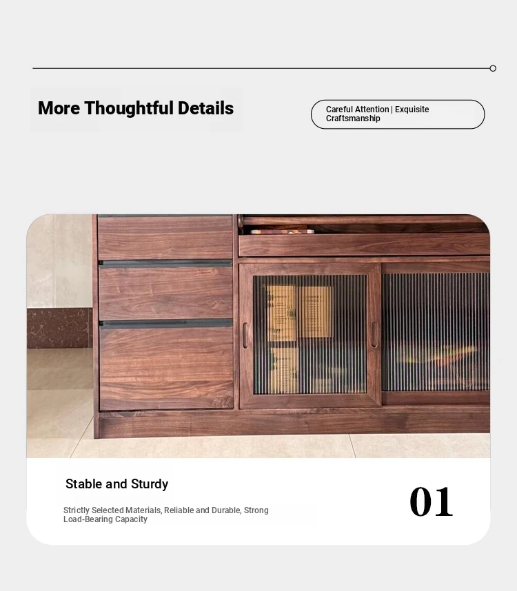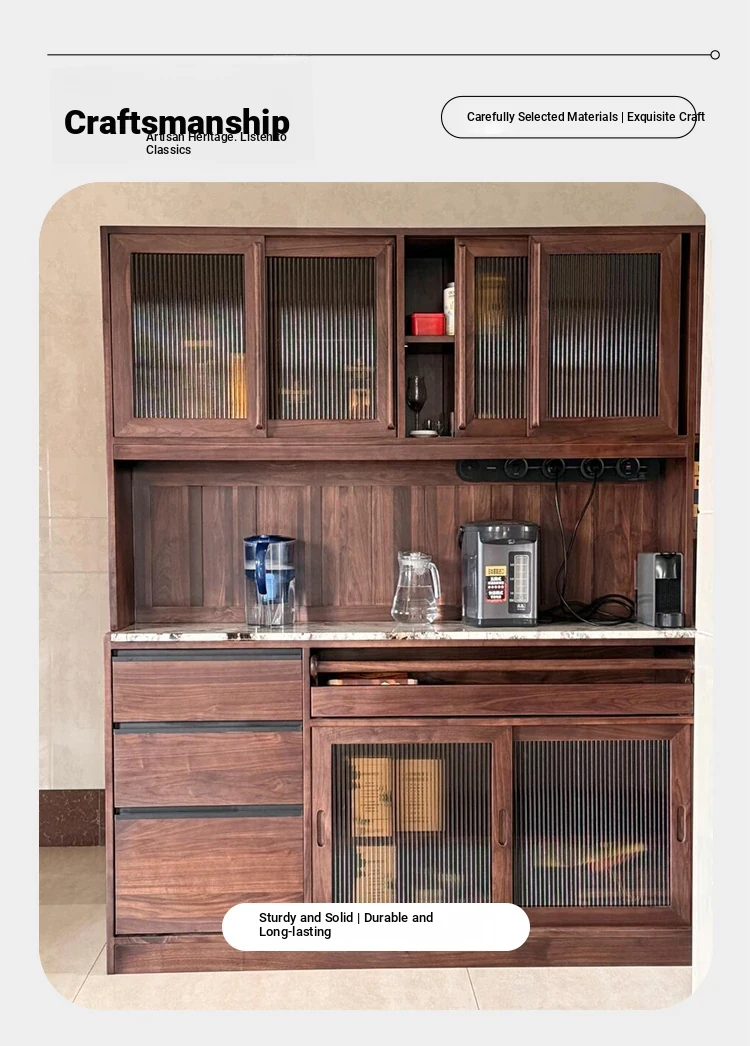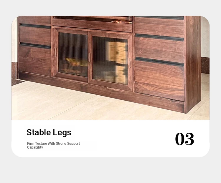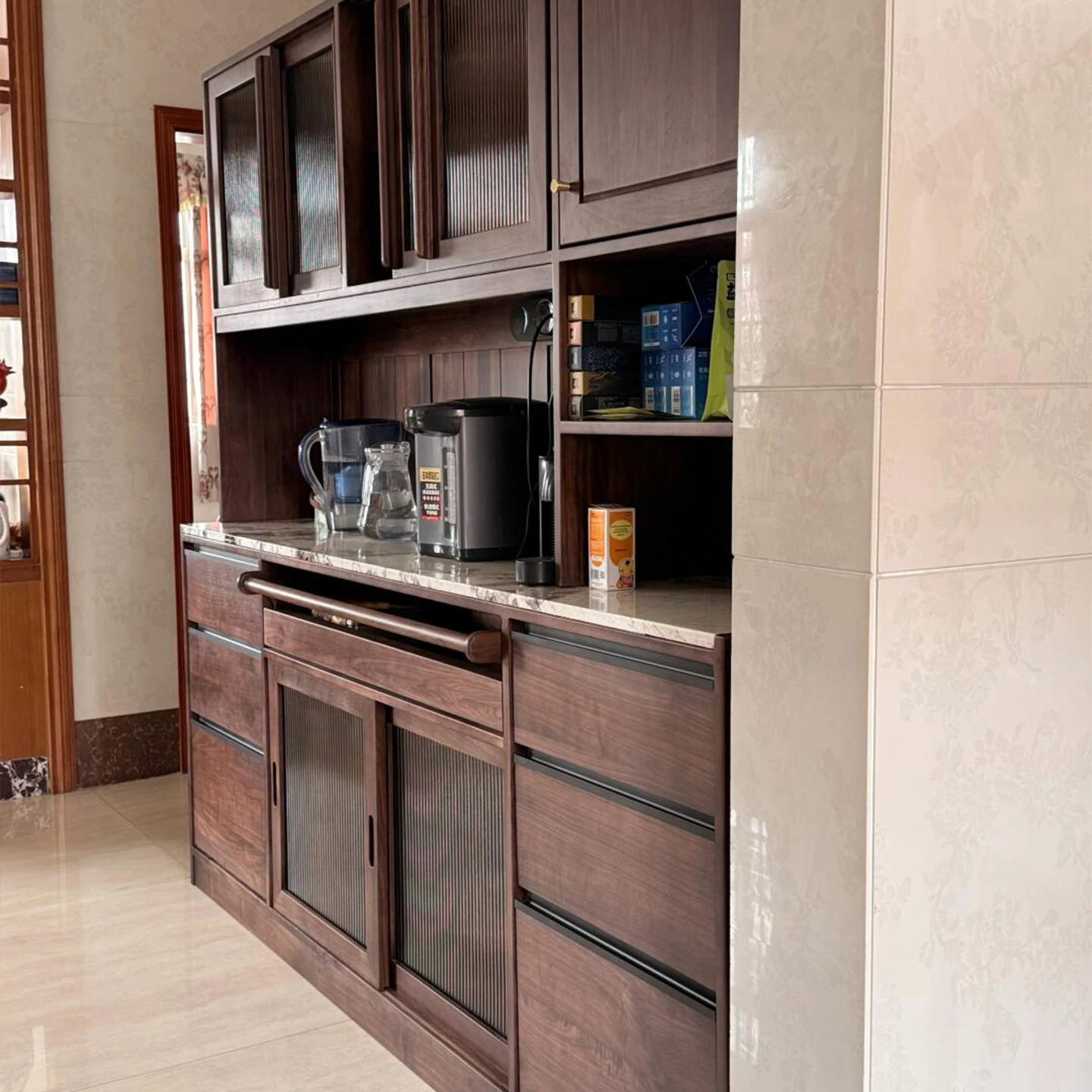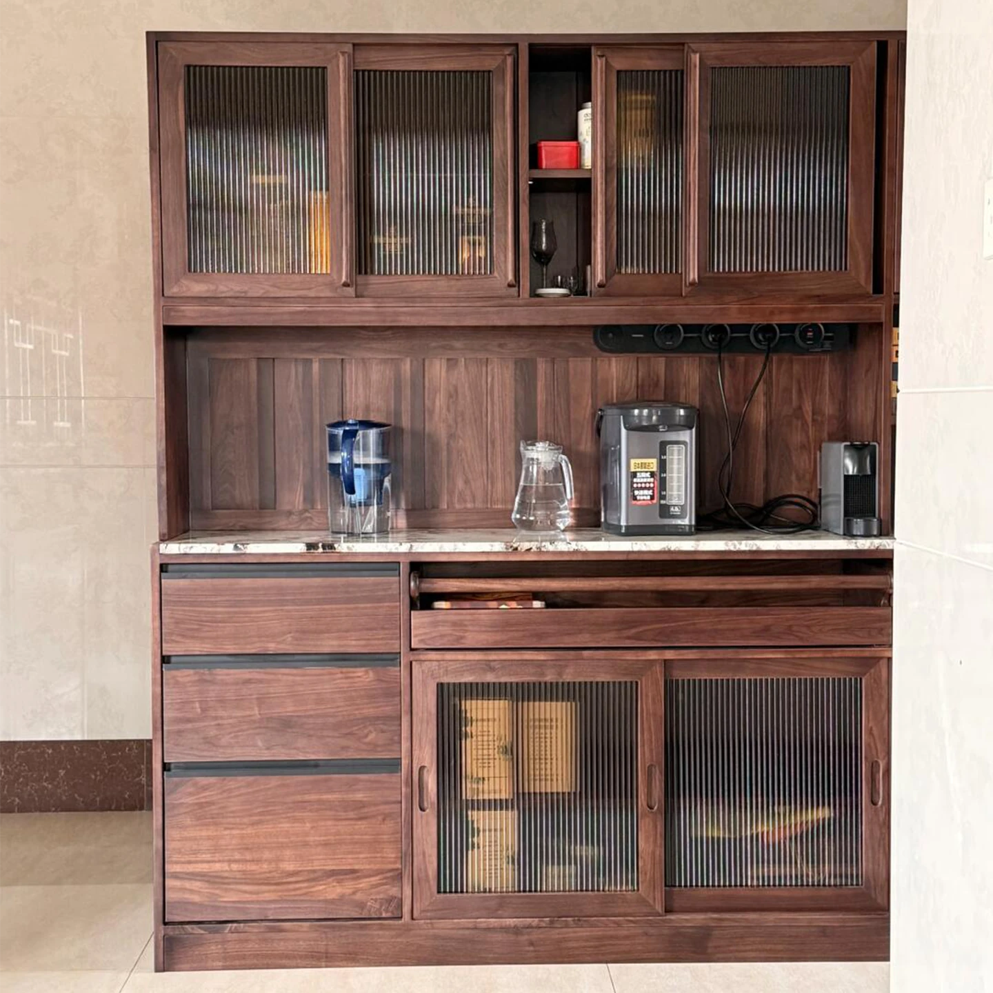Modern Minimalist New Chinese Style Solid Wood Sideboard - 2025 Collection, Walnut Storage Cabinet for Living Room, Perfect for Home Organization