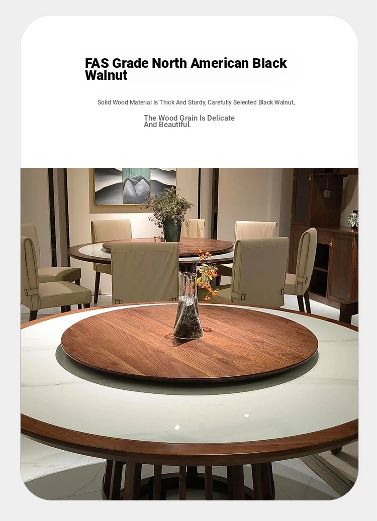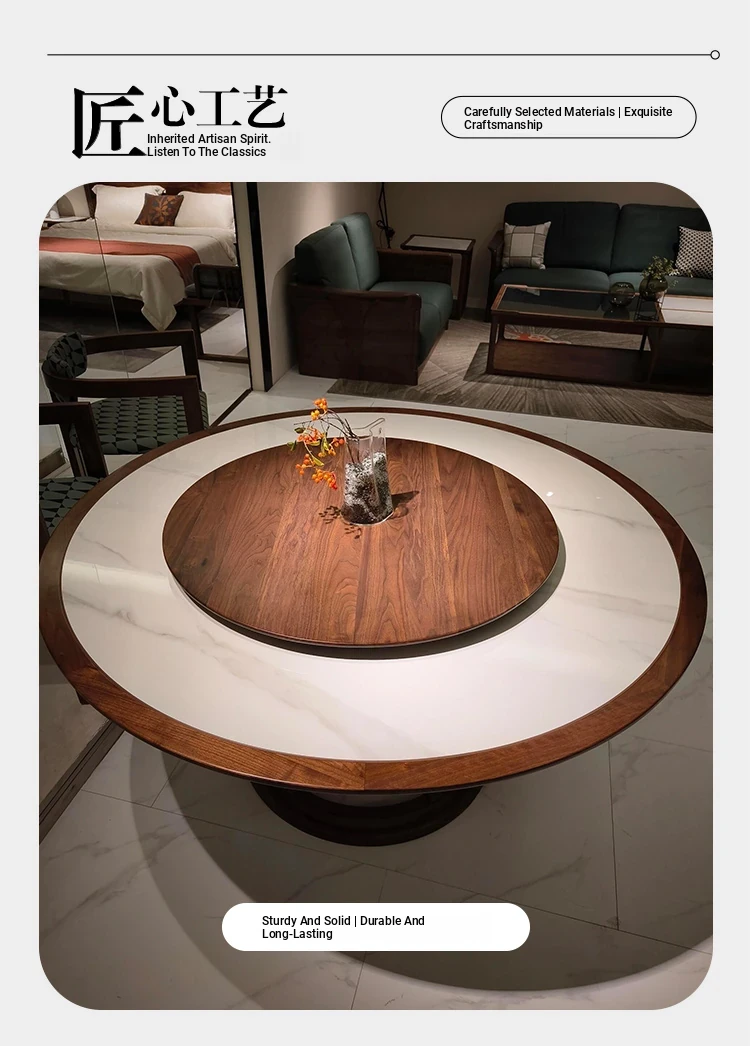 Modern Minimalist Round Dining Table with Rotating Feature – Luxurious New Chinese Style Solid Wood Walnut Table for Living Room and Home Use