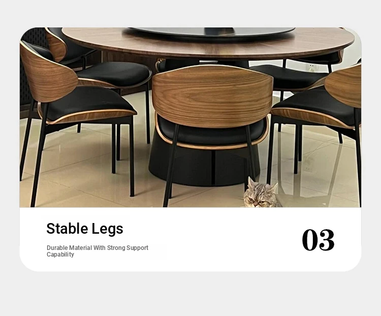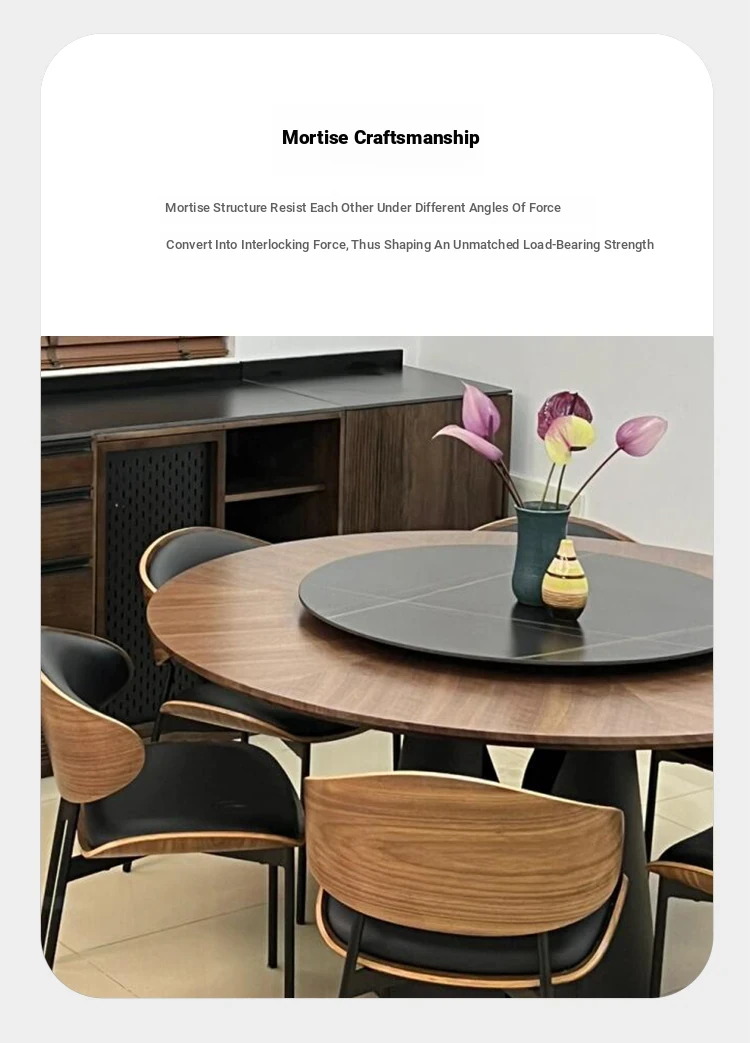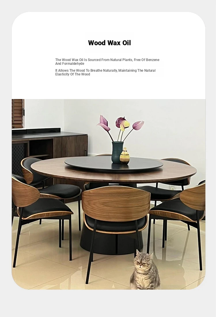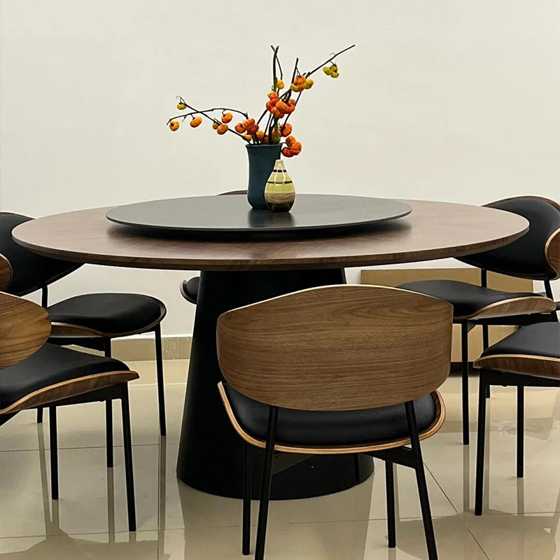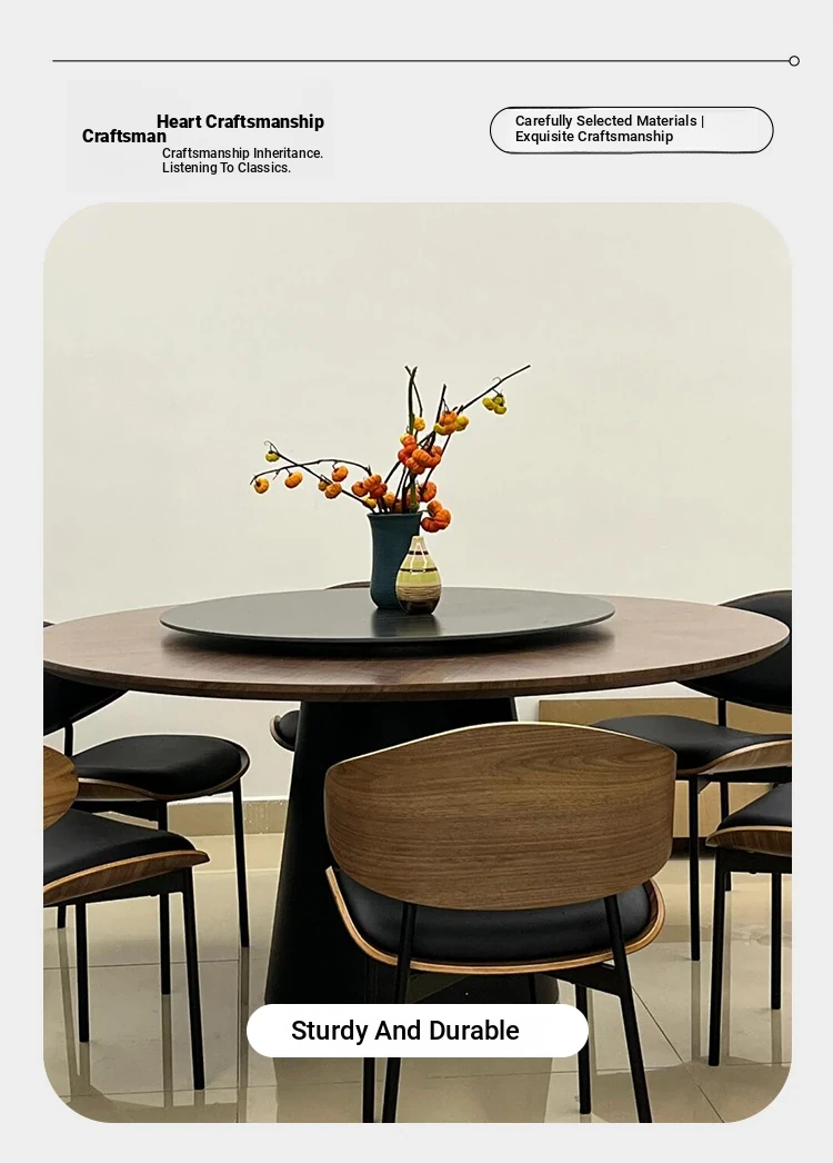 Modern Minimalist Round Walnut Dining Table with Lazy Susan - Luxury New Chinese Style Solid Wood Table for Living Room and Home Use