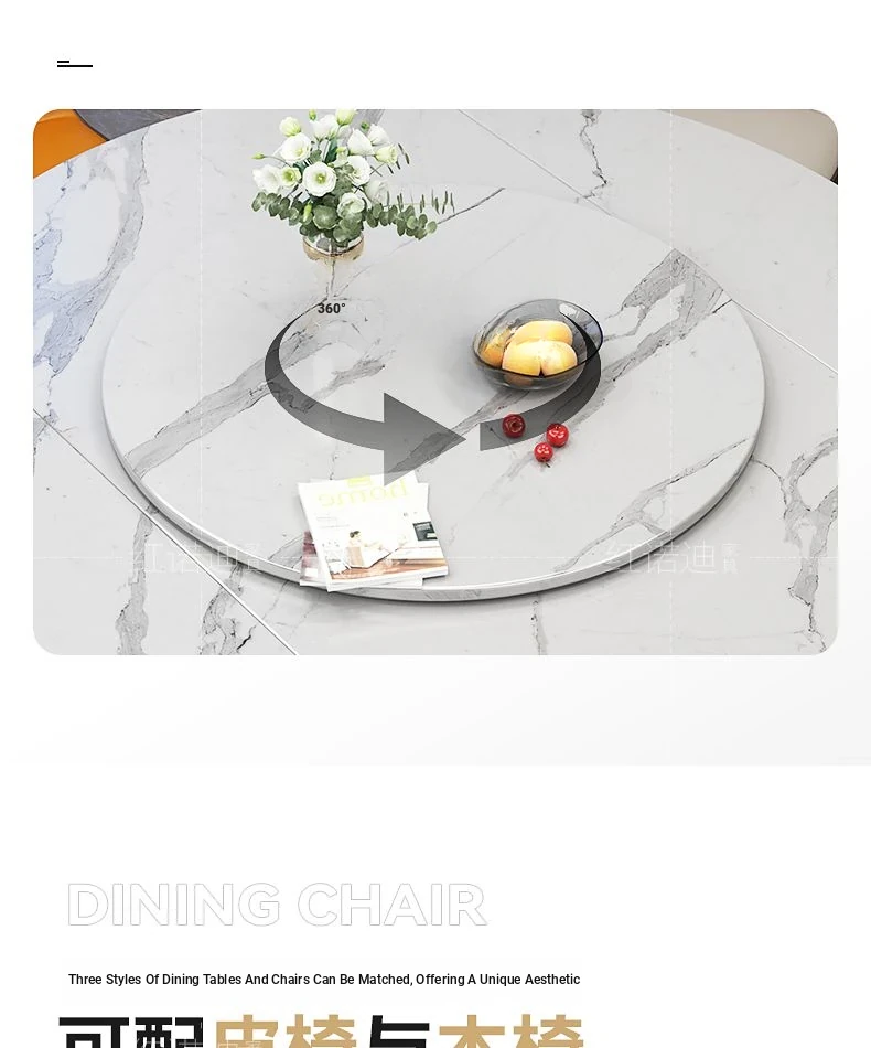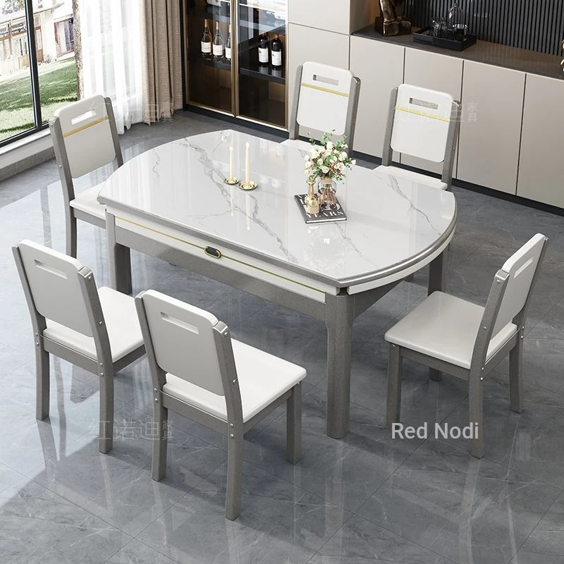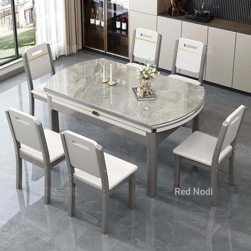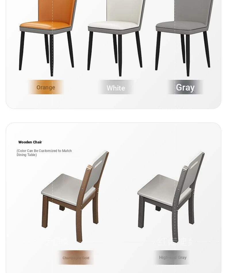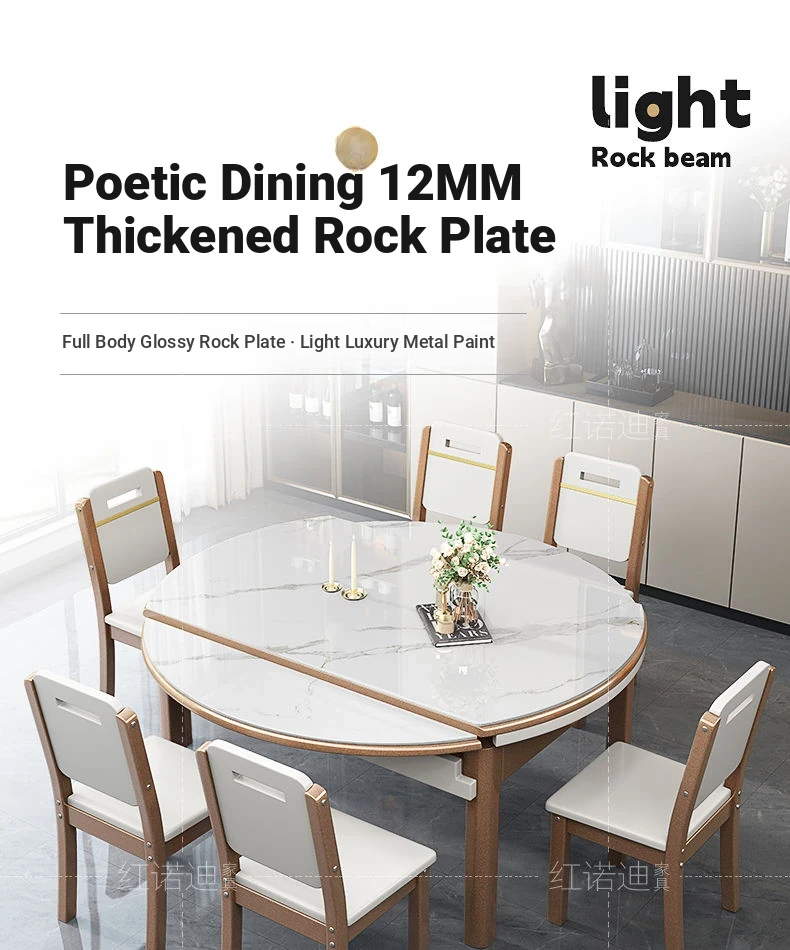53.15 in Dining Table +6 Leather Chair-/Quality [0.47in thickened Rock Plate] Luxury Metallic Paint + Induction cooker