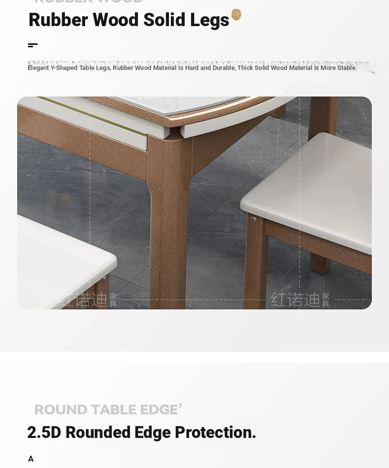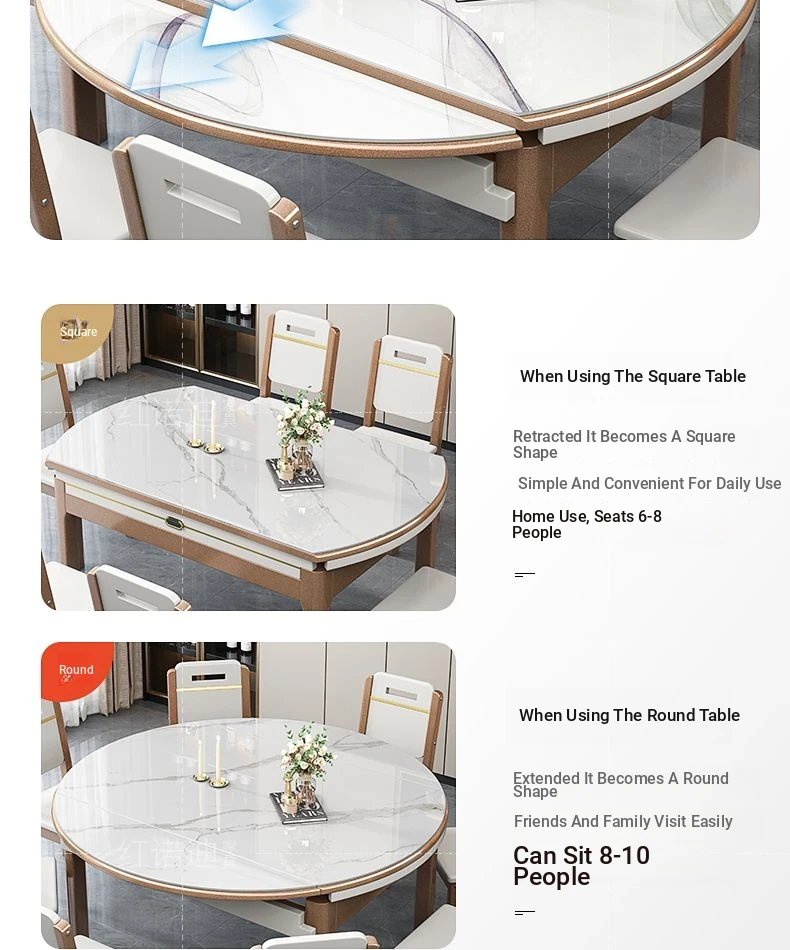 47.24 in Dining Table +8 Wooden Chair-/Upgrade [0.47in Rock Plate] Luxury Metallic Paint + Four-Track Induction cooker