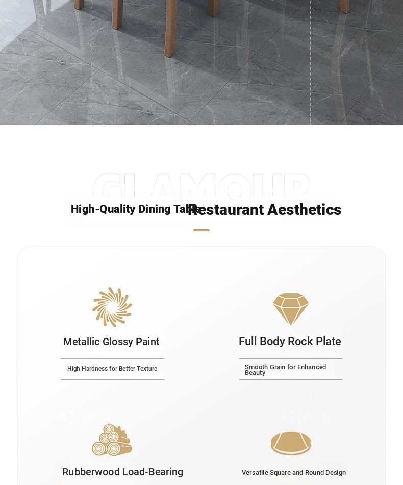 47.24 in Dining Table +6 Wooden Chair-/Upgrade [0.47in Rock Plate] Luxury Metallic Paint + Four-Track Induction cooker