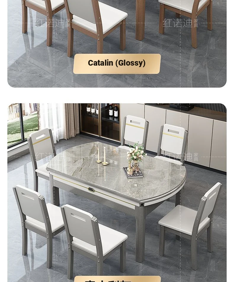 47.24 in Dining Table +6 Wooden Chair-/Quality [0.47in thickened Rock Plate] Luxury Metallic Paint + Induction cooker