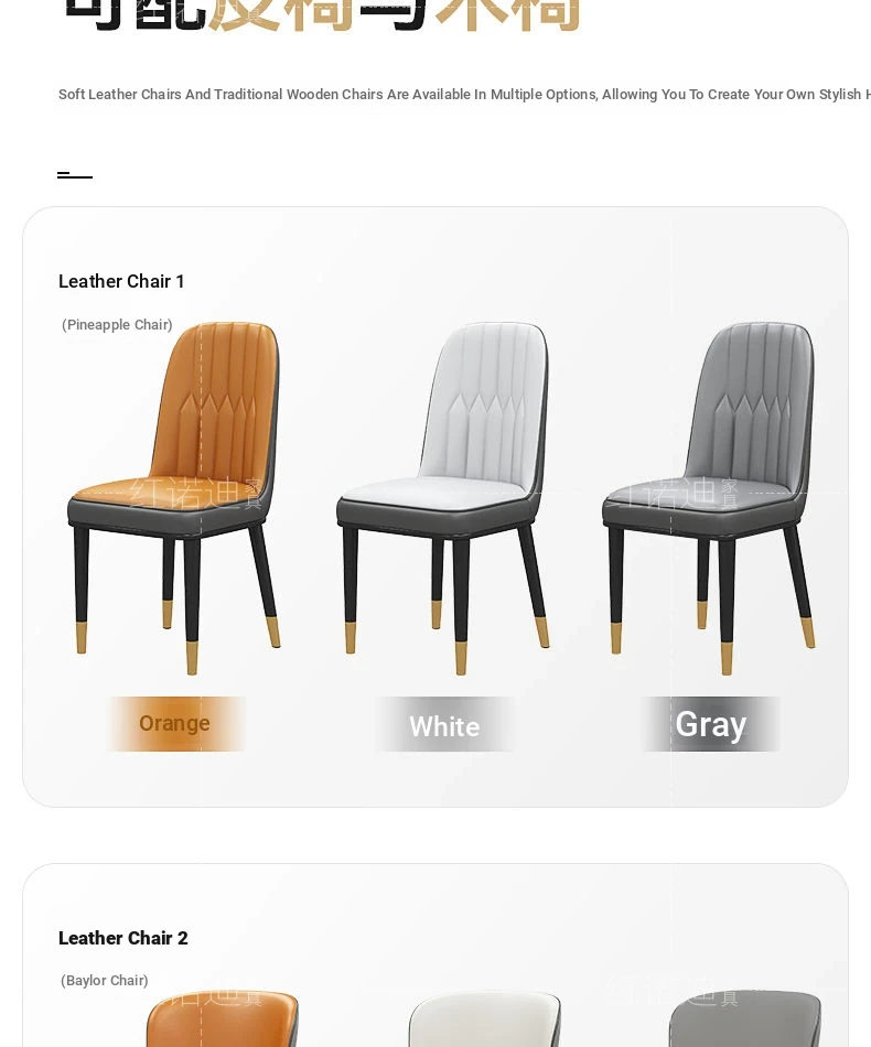 53.15 in Dining Table +6 Leather Chair-/Upgrade [0.47in thickened Rock Plate] Luxury Metallic Paint +4 Tracks