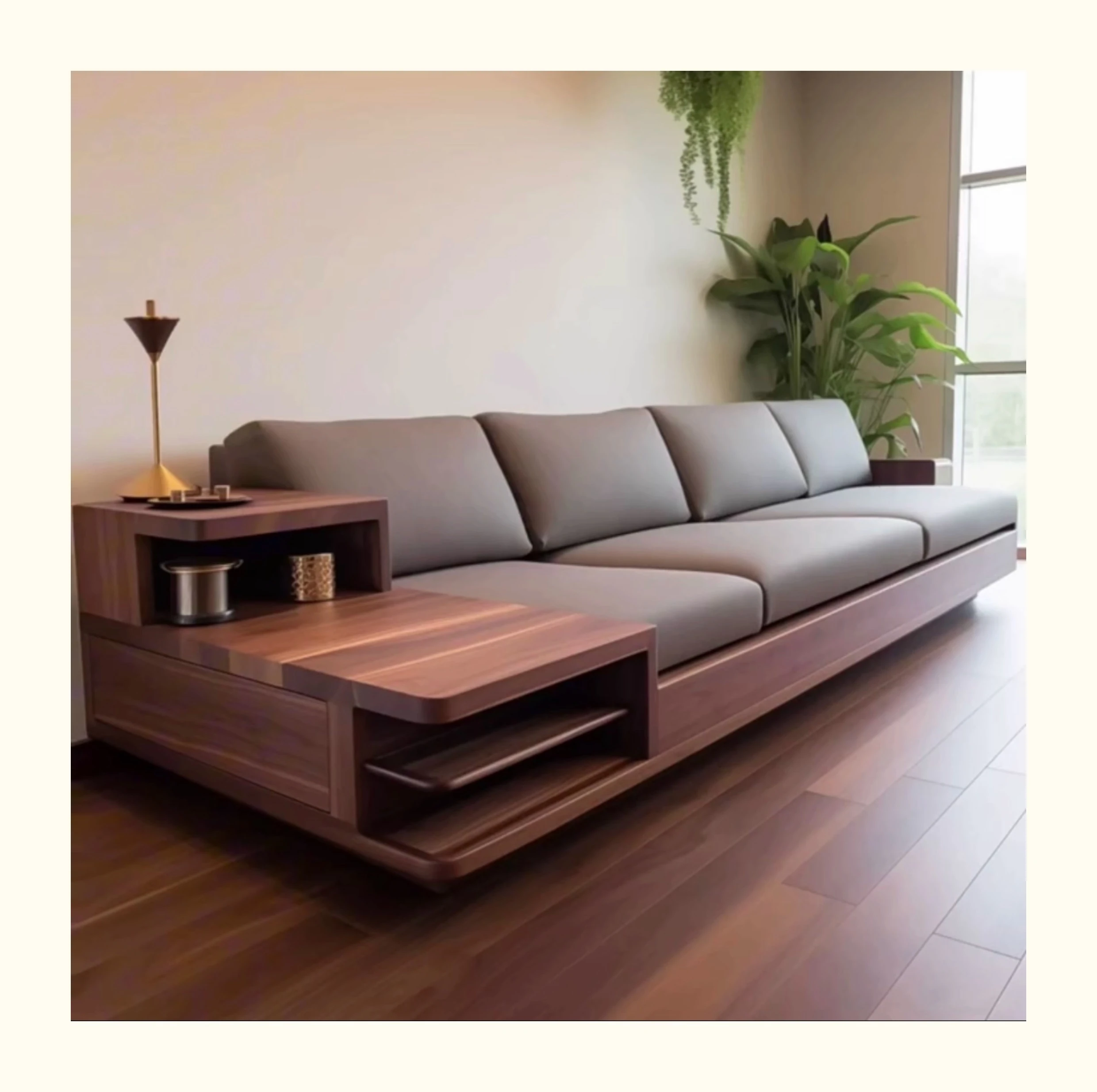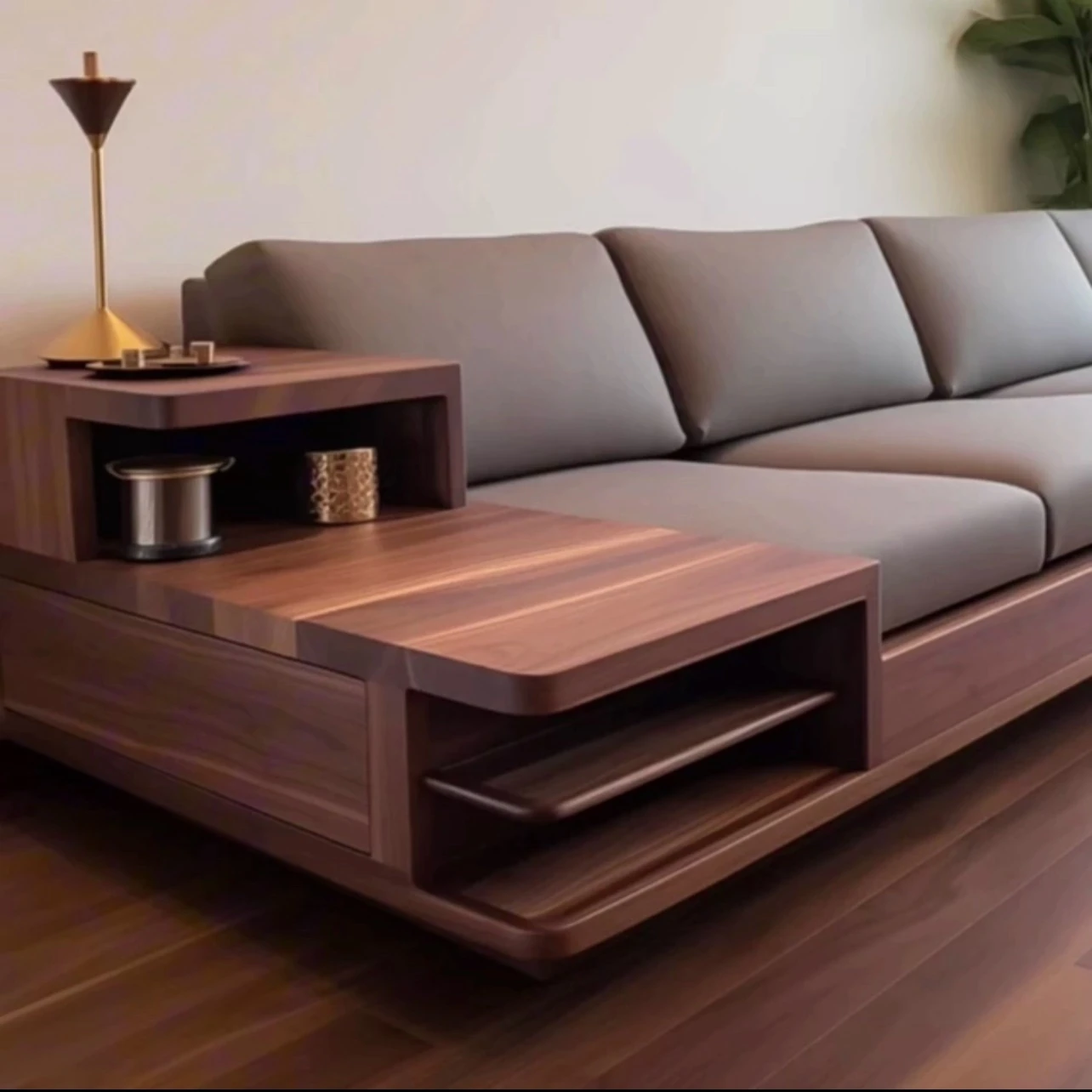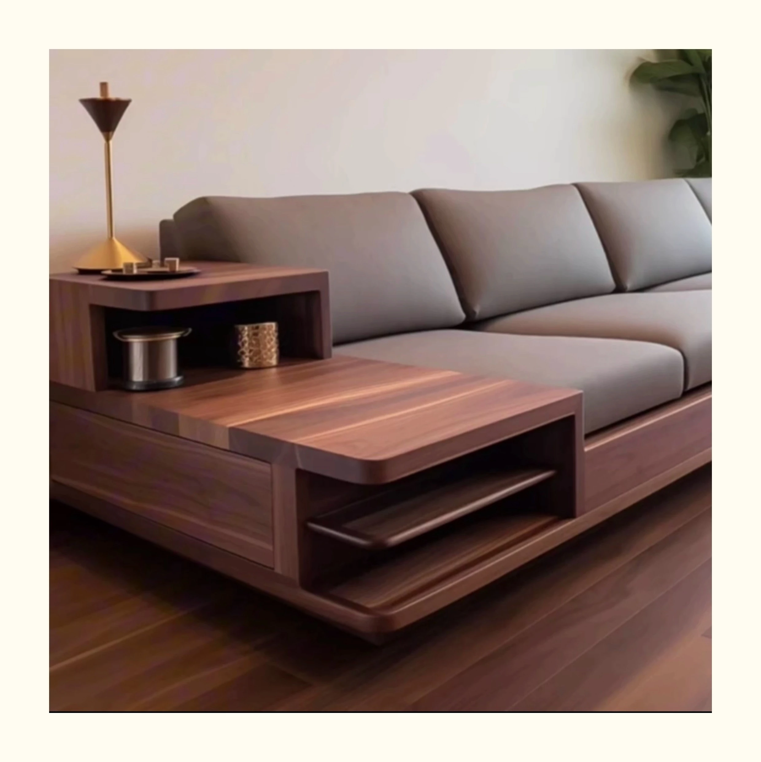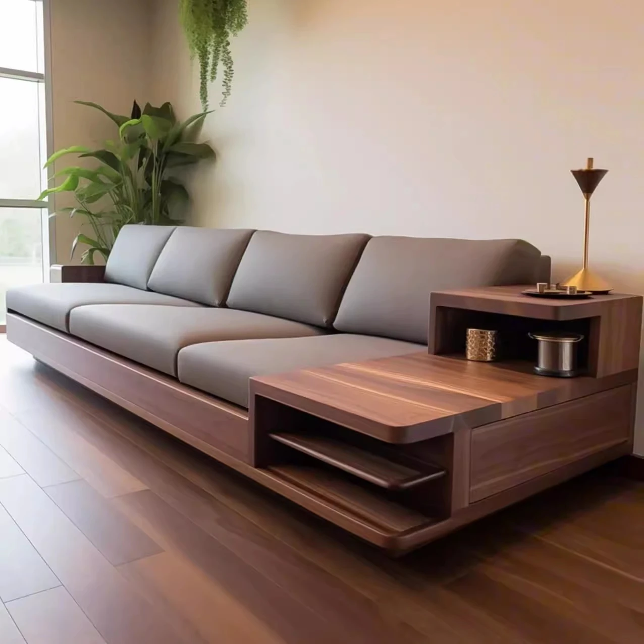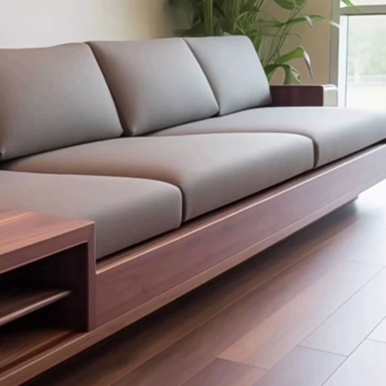 Modern Minimalist Solid Wood Sofa - Contemporary Light Luxury Design in Walnut Finish, Upholstered Three-Seater Couch for Stylish Living Spaces