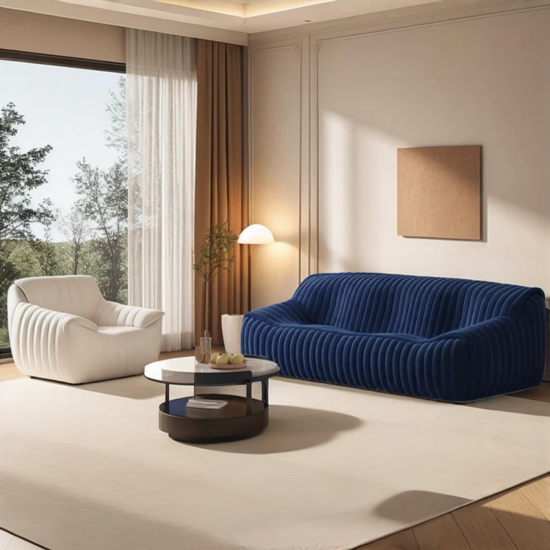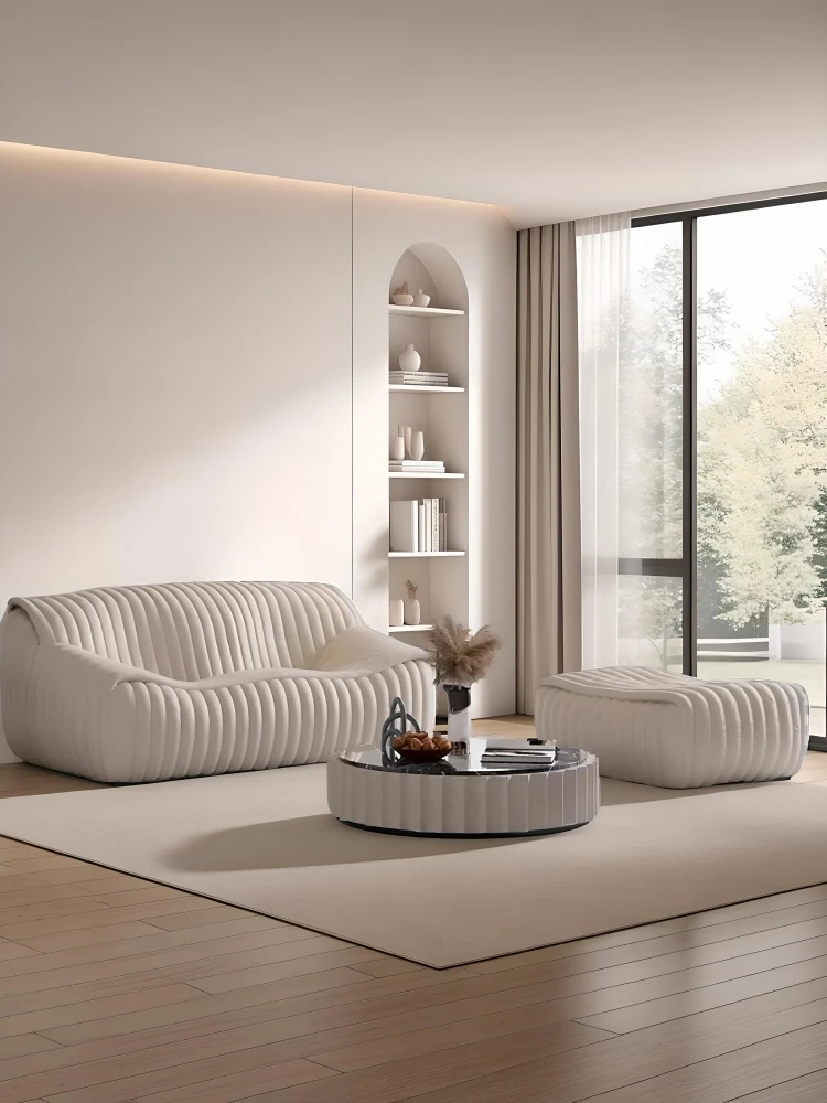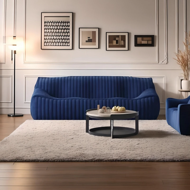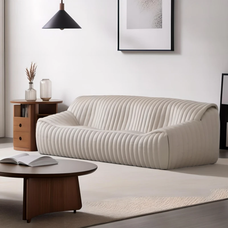 Modern Minimalist Three-Seater Sofa for Small Spaces - Perfect for Living Rooms, Lobbies, Showrooms, and Clothing Stores with Wabi-Sabi Aesthetic