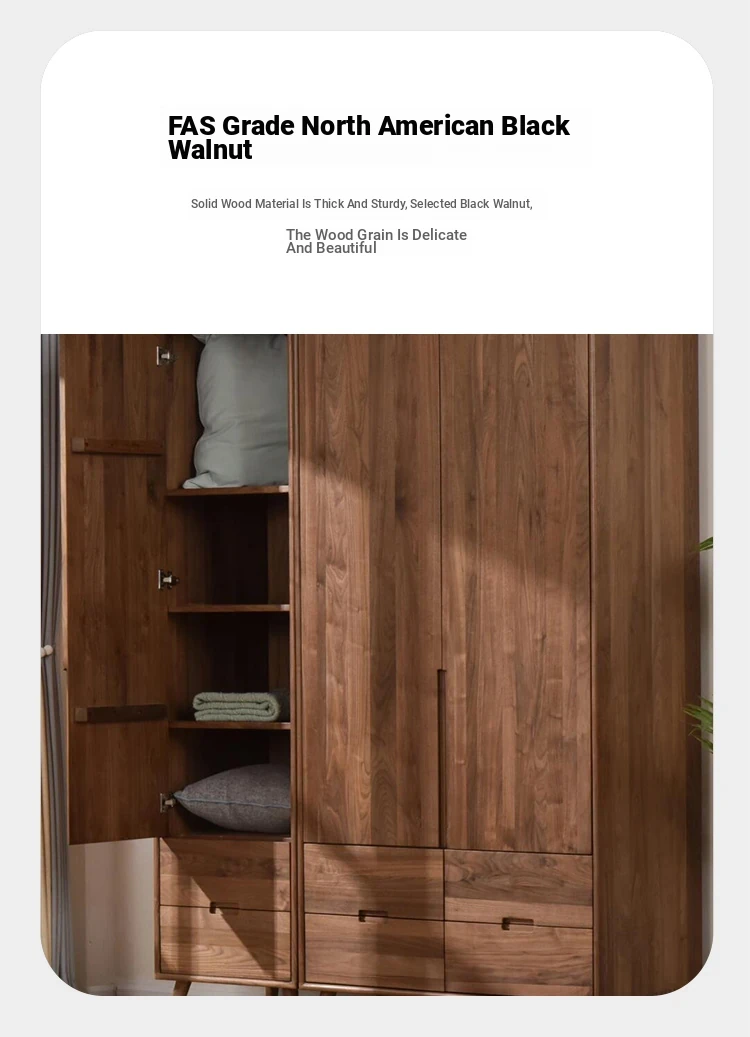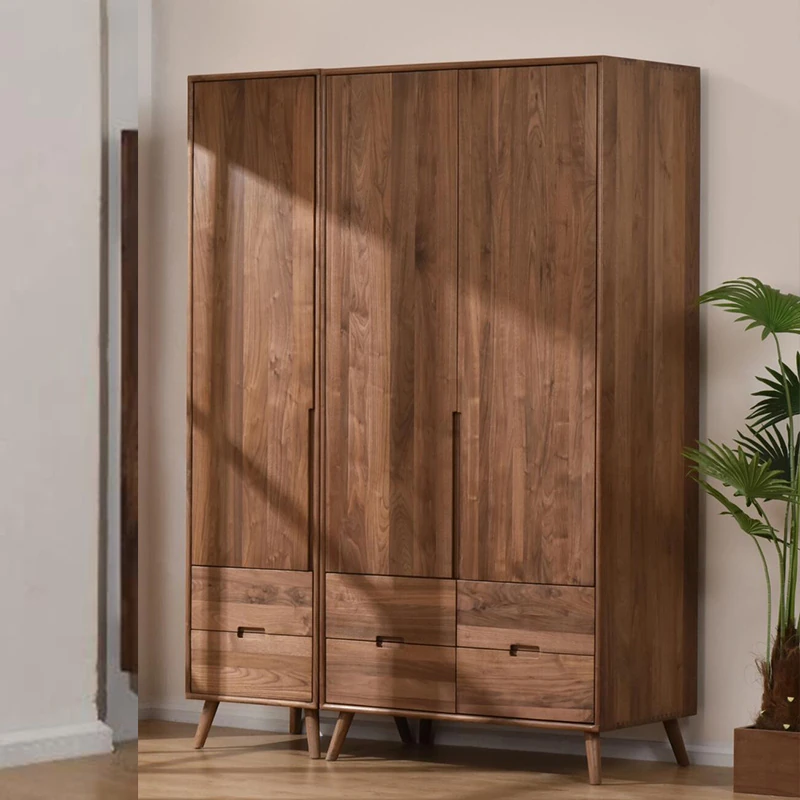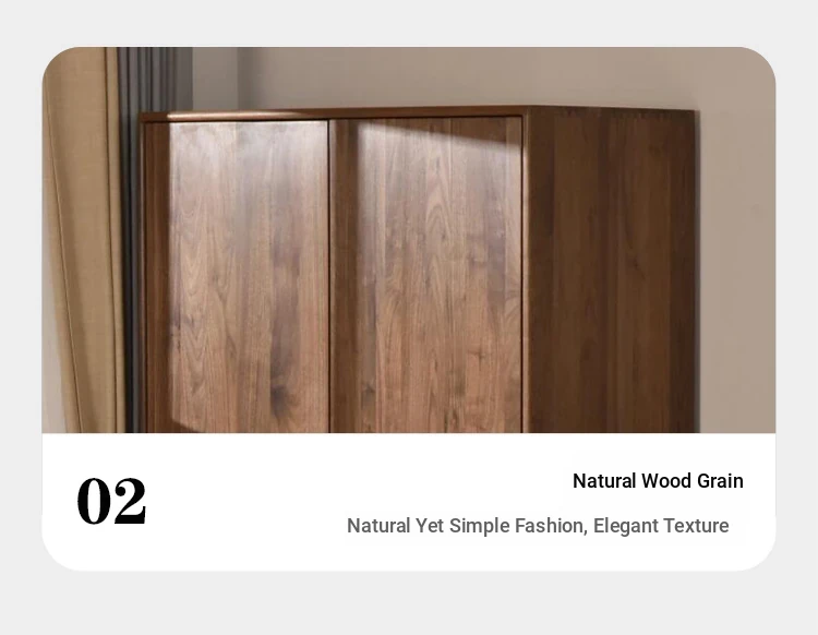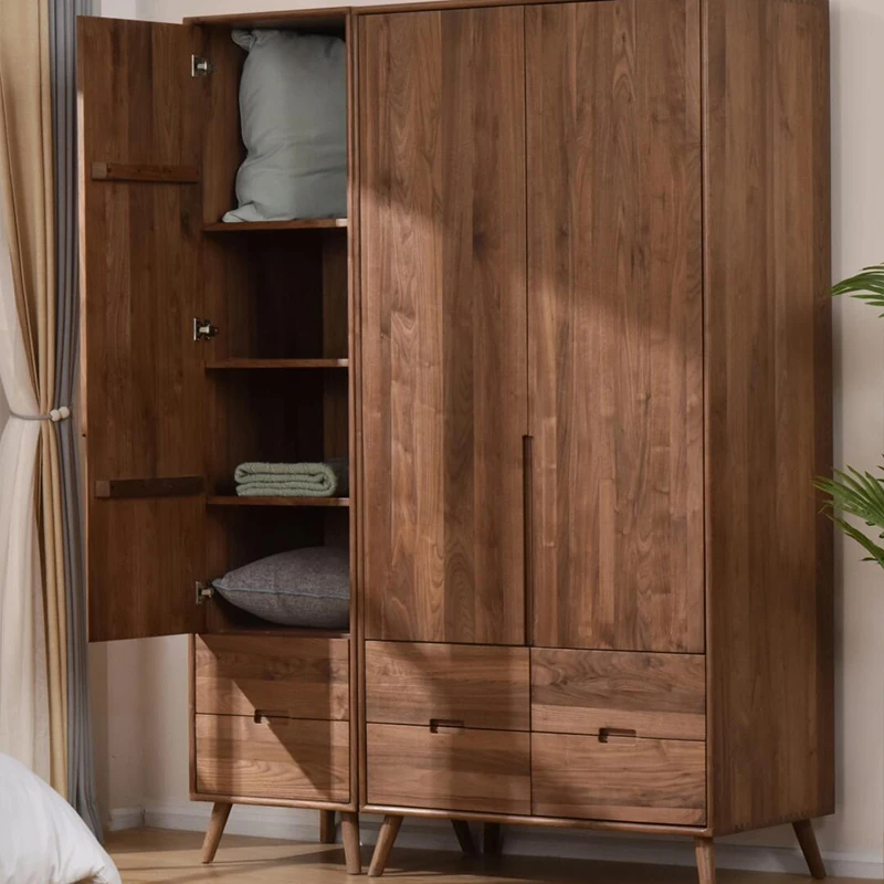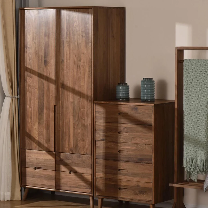 New Chinese Style Black Walnut Single Door Wardrobe - Solid Wood Double Door Cabinet for Home Bedroom - Adult Scandinavian-Style Combination Storage Unit