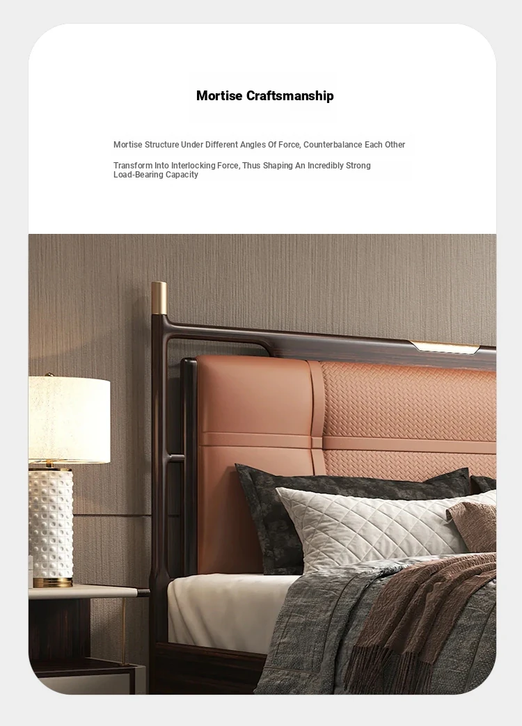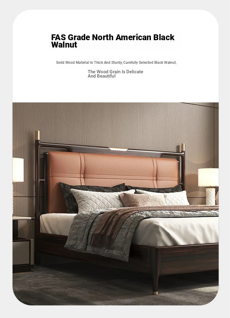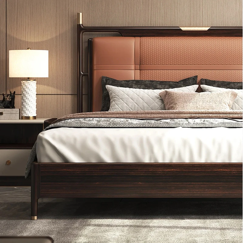 New Chinese Style Luxury King-Size Bed for Master Bedroom - 2025 Walnut Wood Upholstered Soft Bed, Elegant and Stylish Design