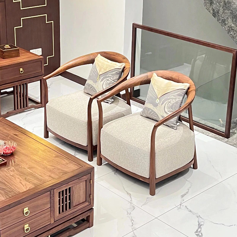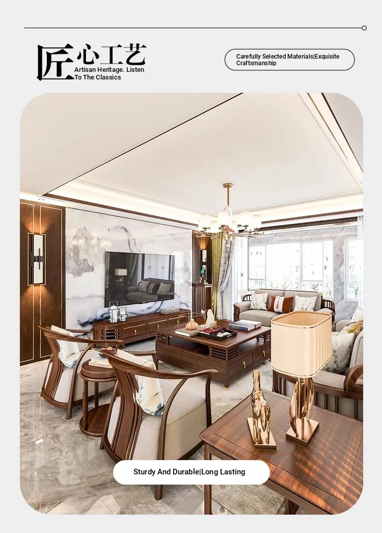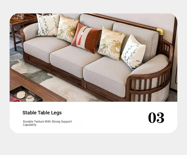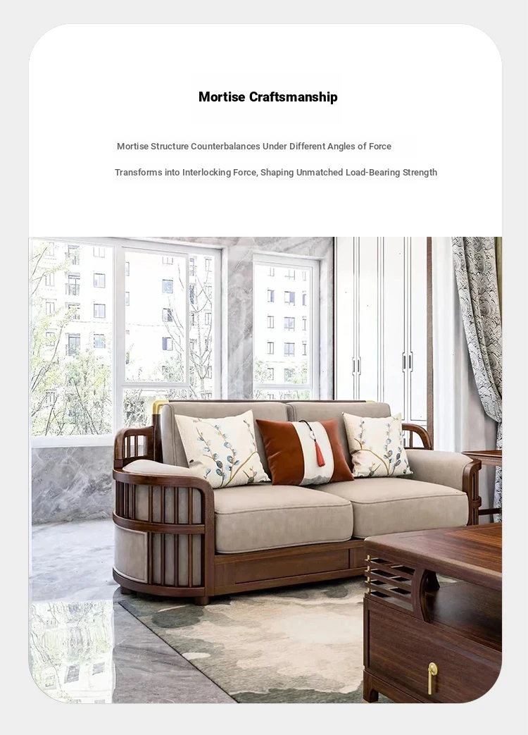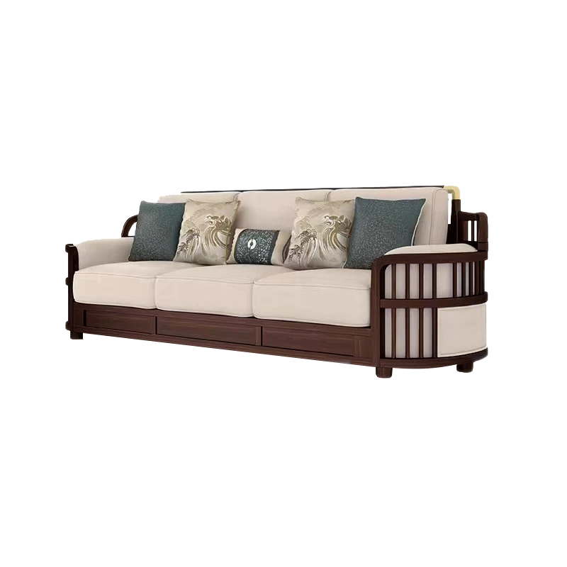 New Chinese Style Sofa for Living Room 2025 - Large Size, Ideal for Homes and Reception Areas, Solid Wood and Fabric Design, Walnut Finish for Villas