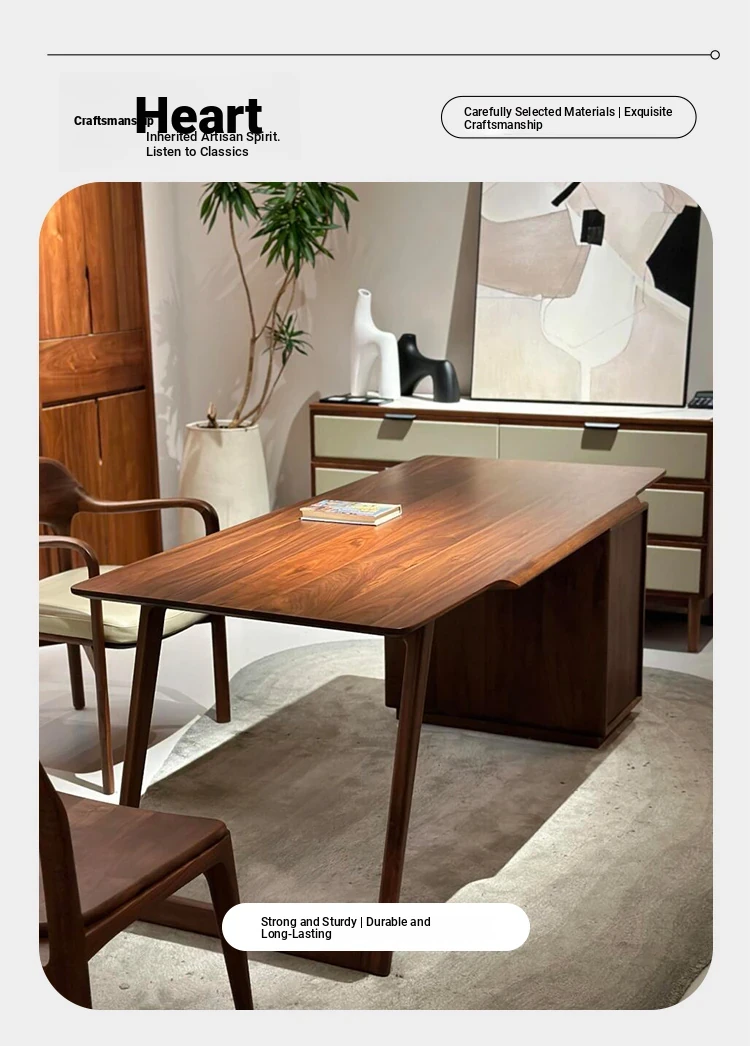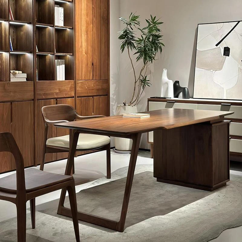 New Chinese Style Solid Wood Desk 2025 - Modern Minimalist Walnut Office Computer Table with Elegant Luxury Touch for Living Room