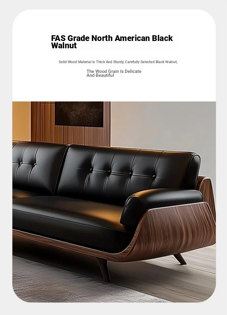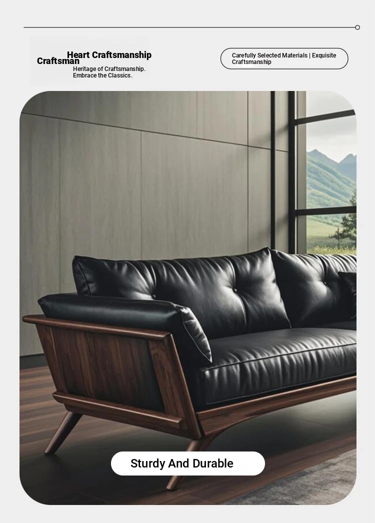 New Chinese Style Solid Wood Sofa 2025 - Luxurious Leather Three-Seat Couch for Living Room, Featuring Elegant Walnut Finish and Modern Aesthetic