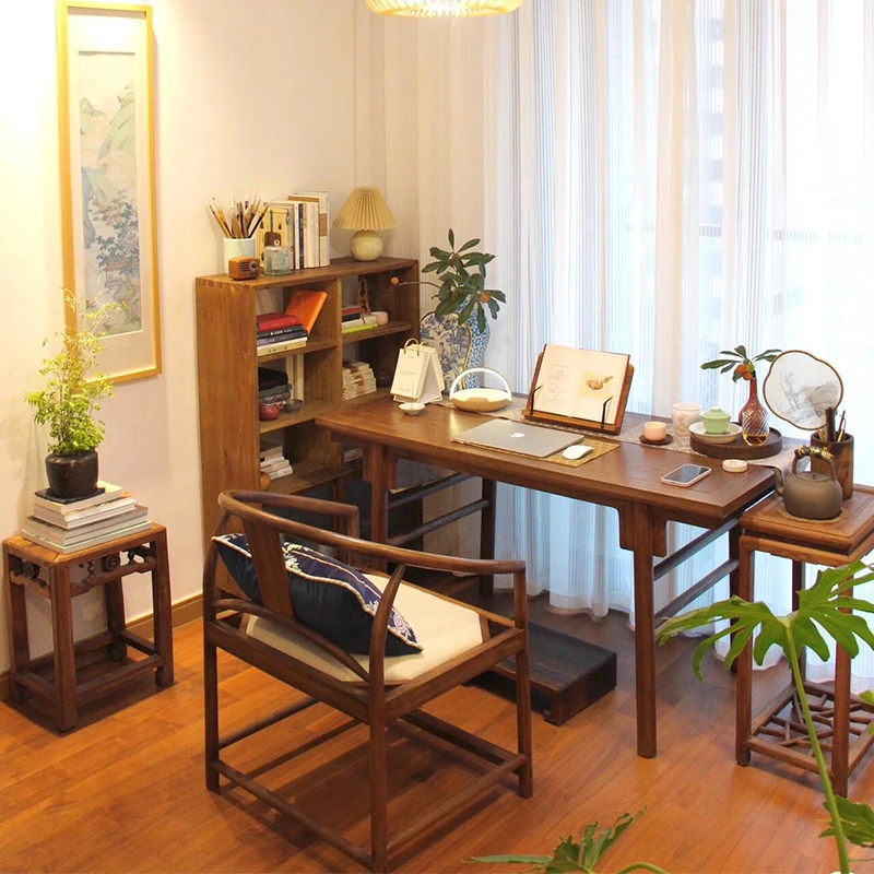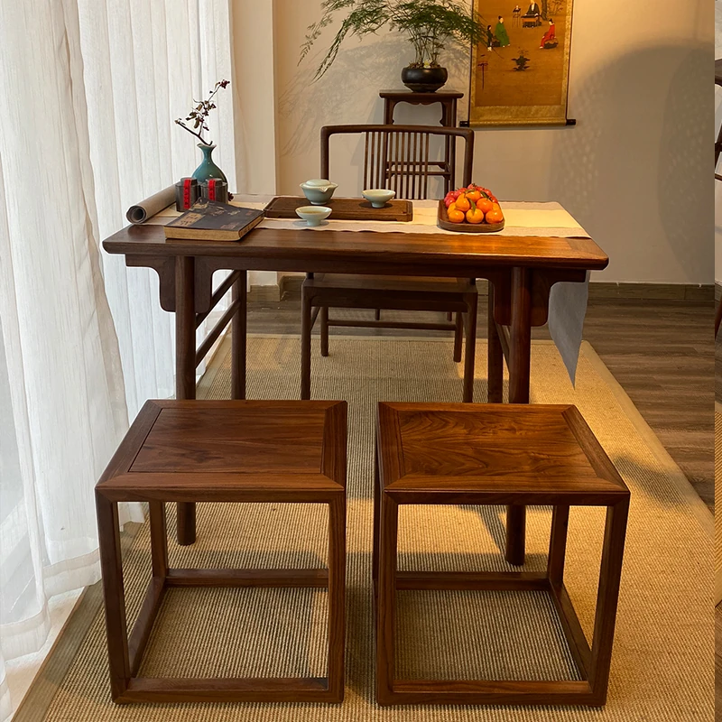 New Chinese-Style Compact Balcony Tea Table for Home - 2025 Model, Walnut Wood Minimalist Design, Perfect for Small Living Rooms and Tea Brewing.