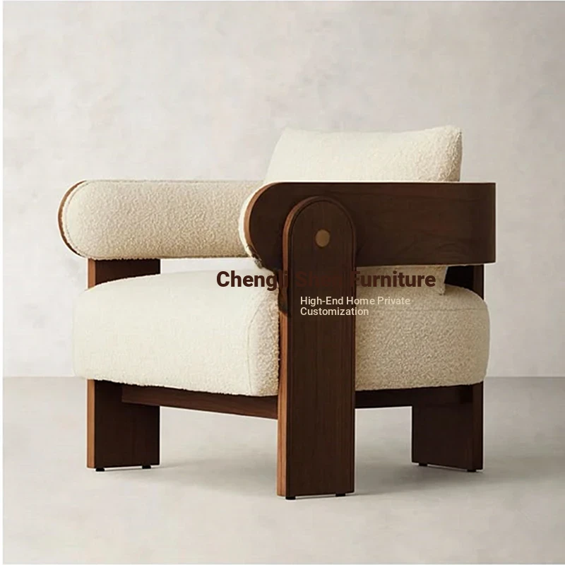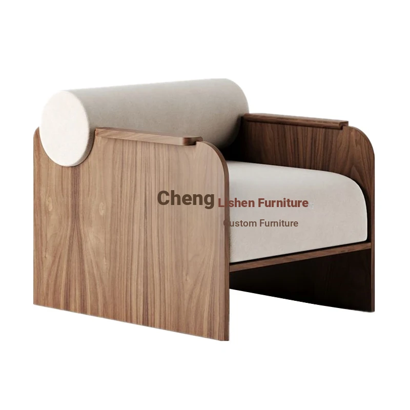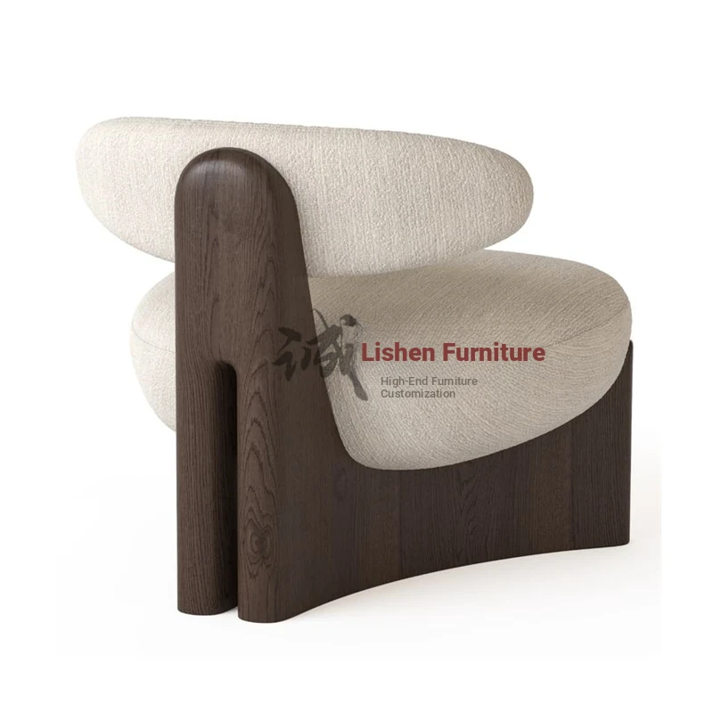 New Design Modern Wabi-Sabi Style Solid Wood Fabric Armchair - Perfect for Showrooms, Designer Spaces, and Hotels - A Unique Statement Piece for Your Home