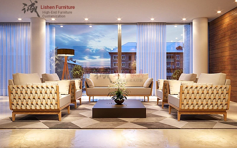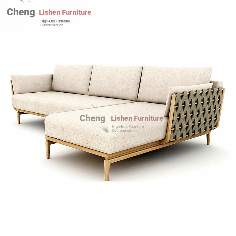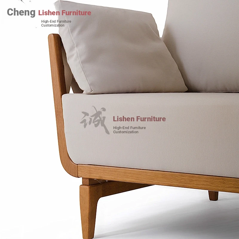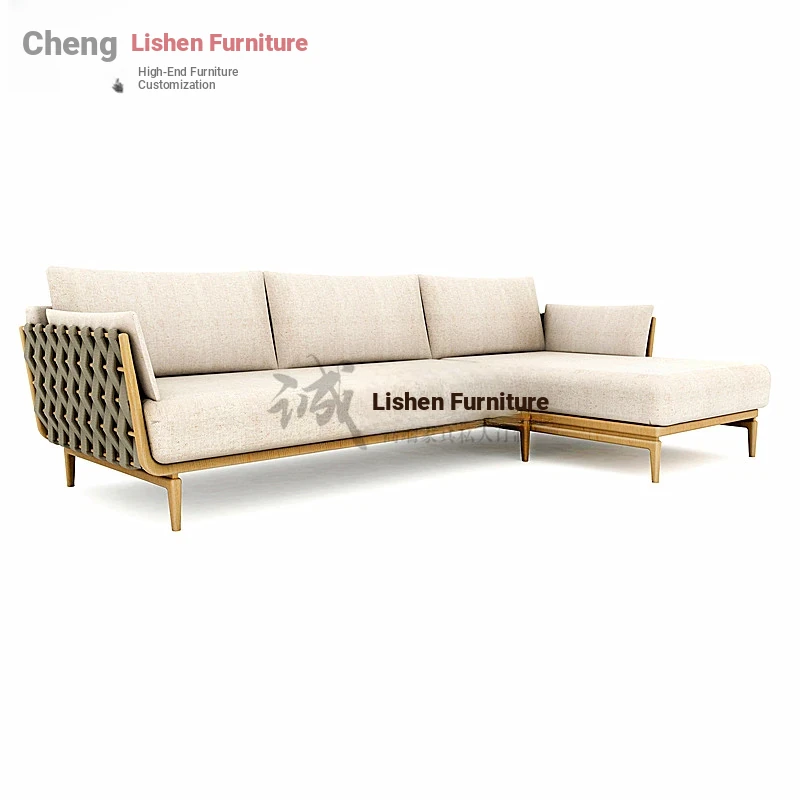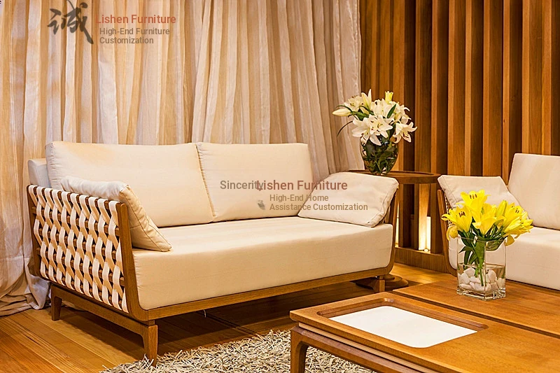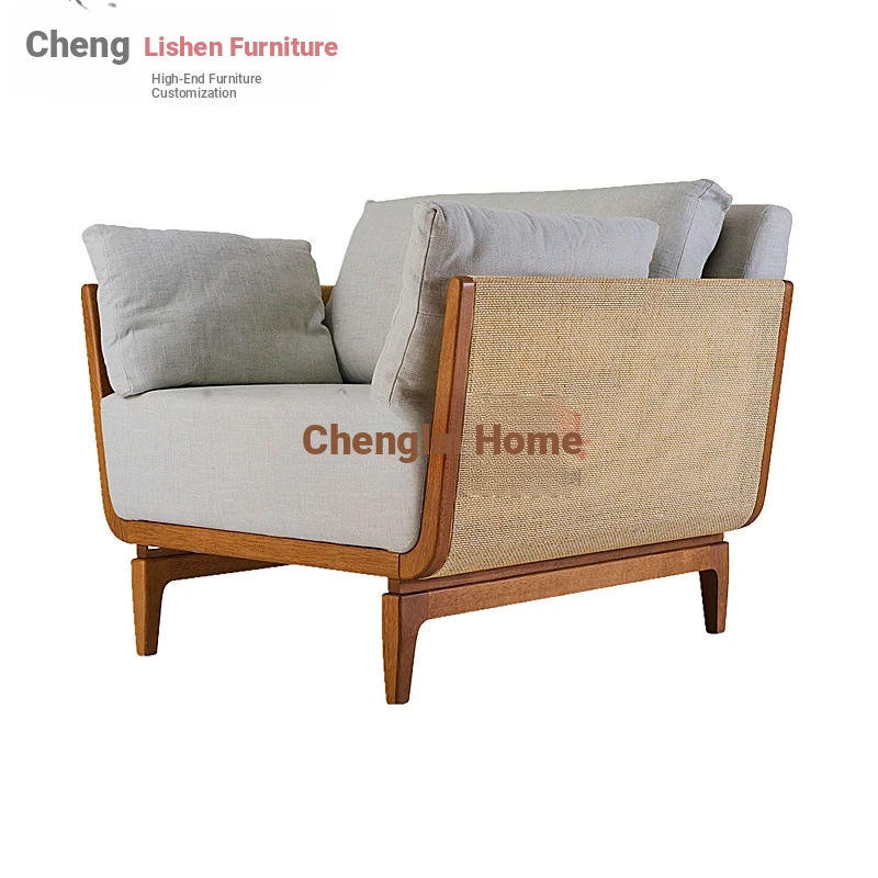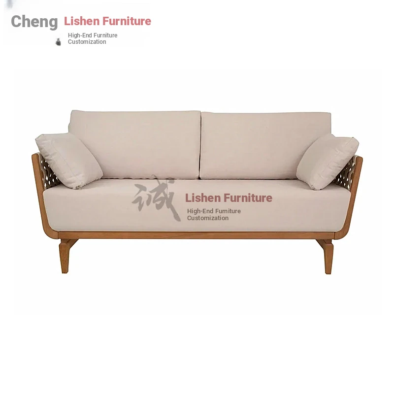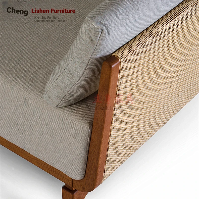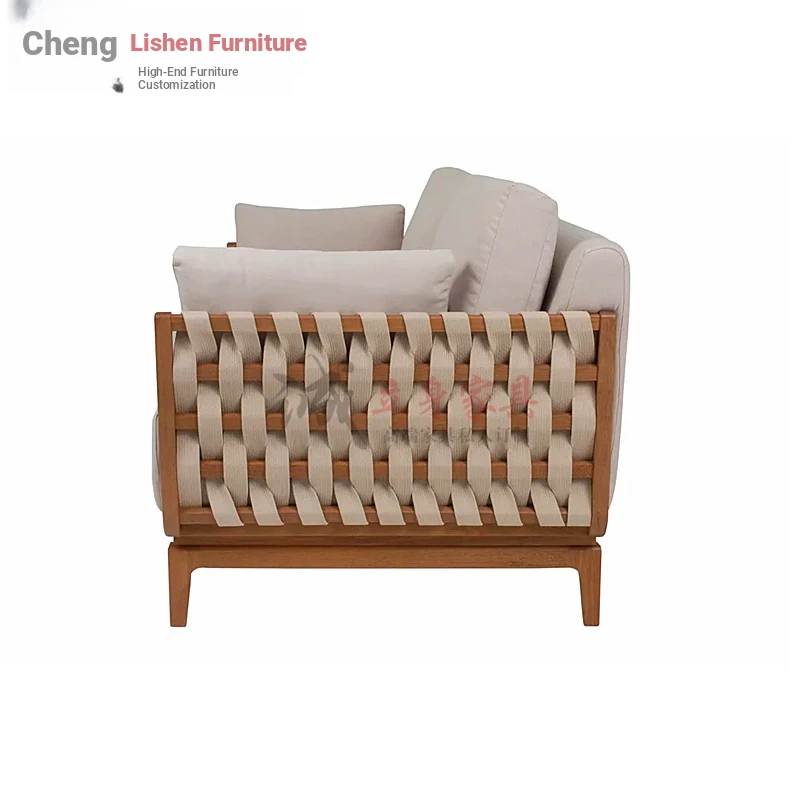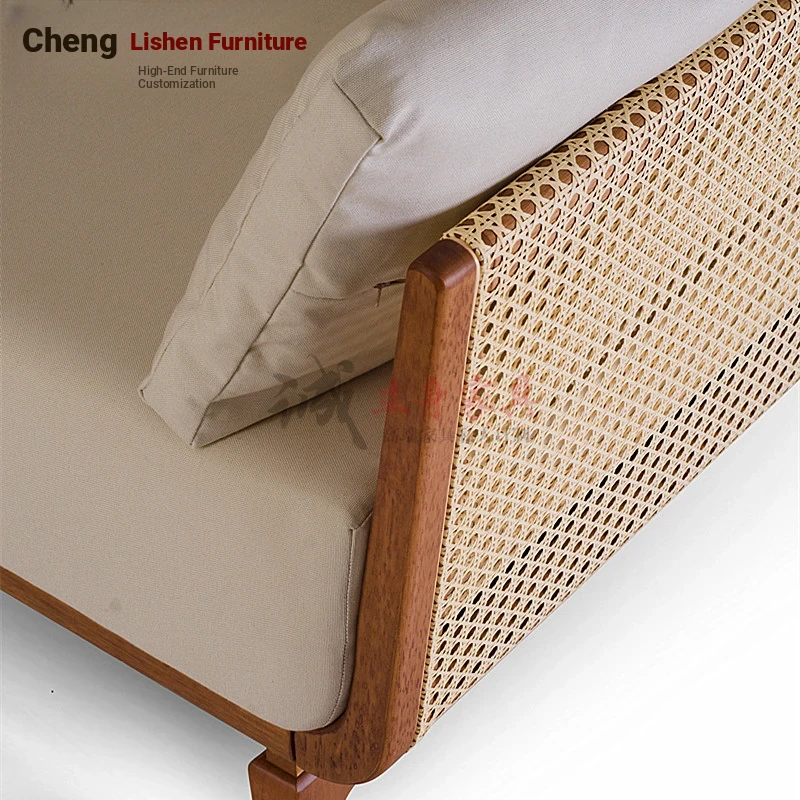 New Postmodern Chinese Style Woven Fabric Sofa - American Rustic Wood and Rattan Design, Italian Solid Wood Sofa for a Chic and Comfortable Living Space