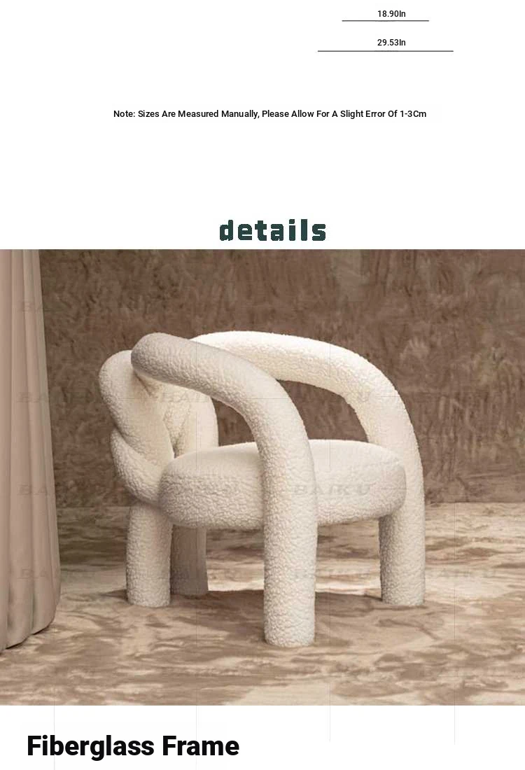 Nordic Creamy Style Leisure Chair - Unique Lamb Wool Fabric Sofa Chair for Living Room & Bedroom, Perfect for Makeup and Cozy Relaxation