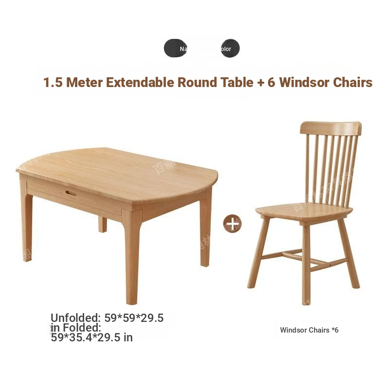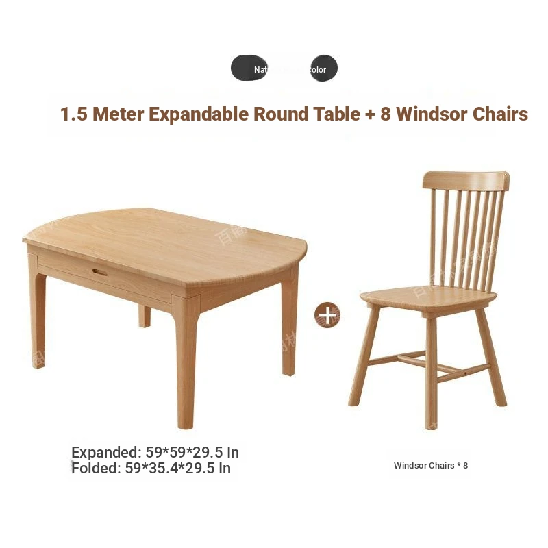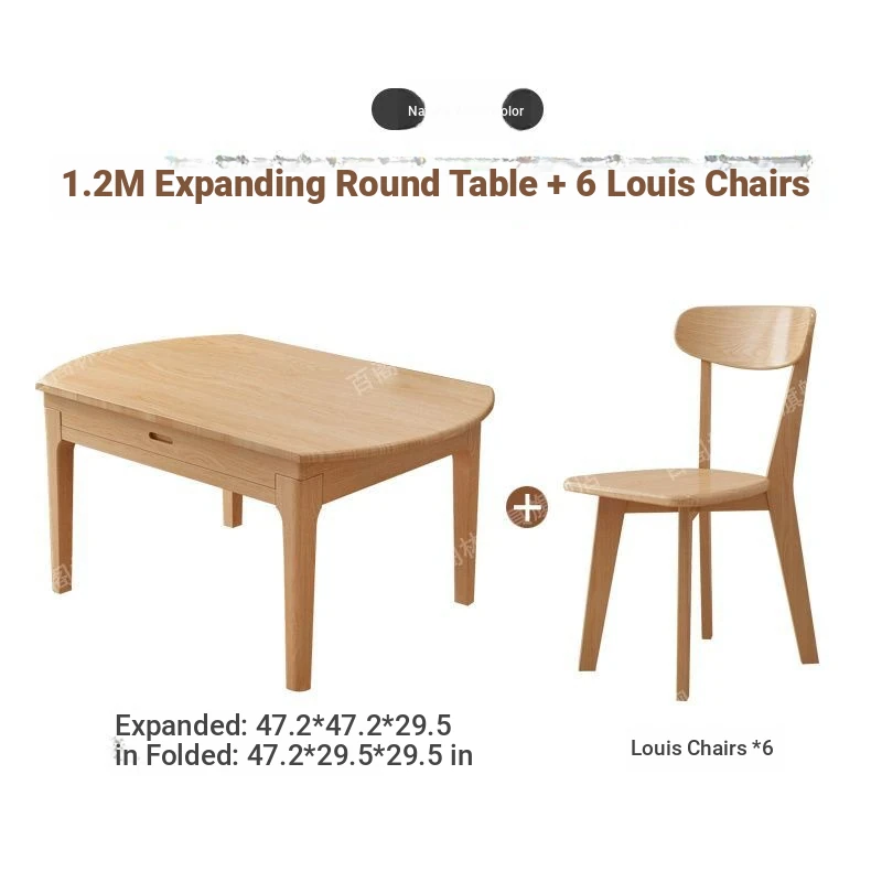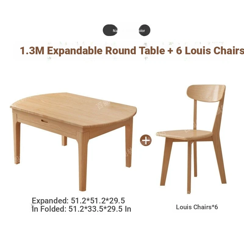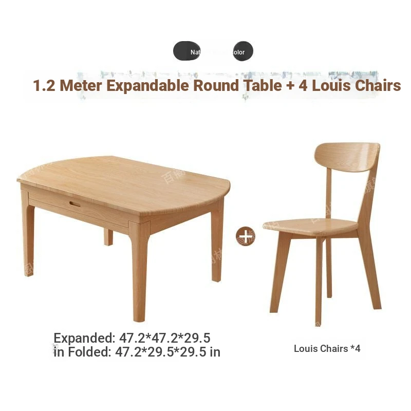 Nordic Solid Wood Dining Table Set - Minimalist Expandable Folding Table for Small Spaces, Dual-Use Square and Round Design, Perfect for Home Dining