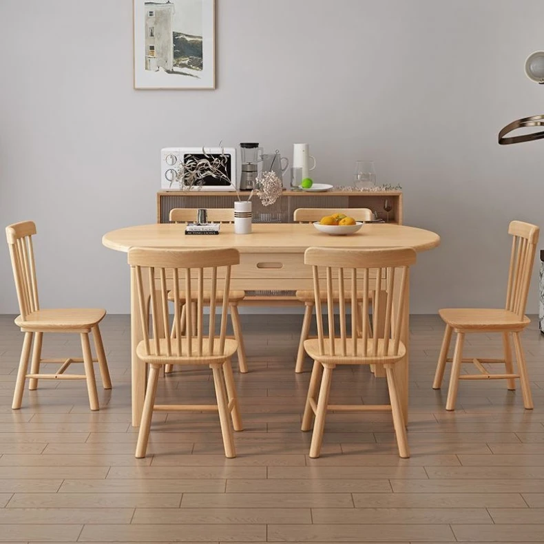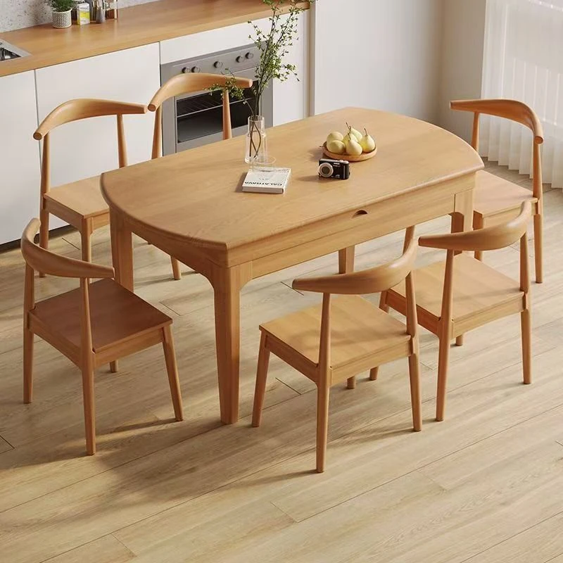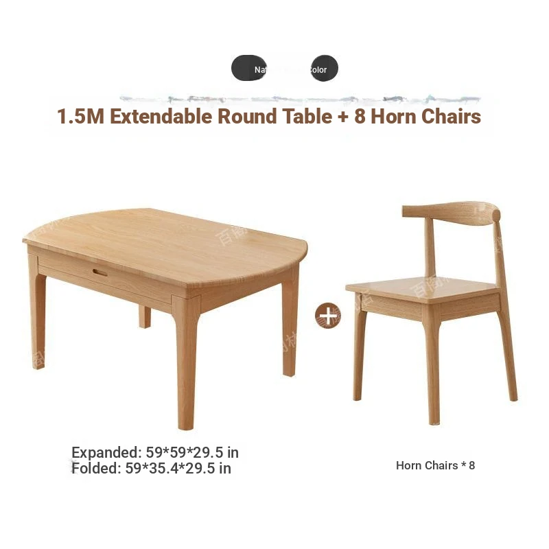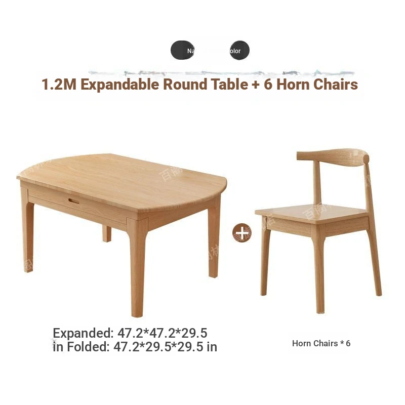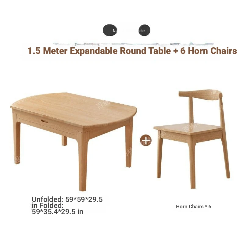 Nordic Solid Wood Dining Table Set - Minimalist Expandable Folding Table for Small Spaces, Dual-Use Square and Round Design, Perfect for Home Dining
