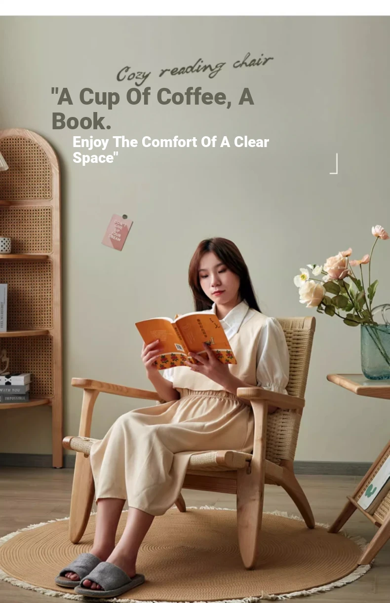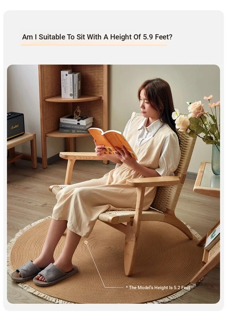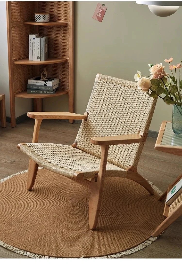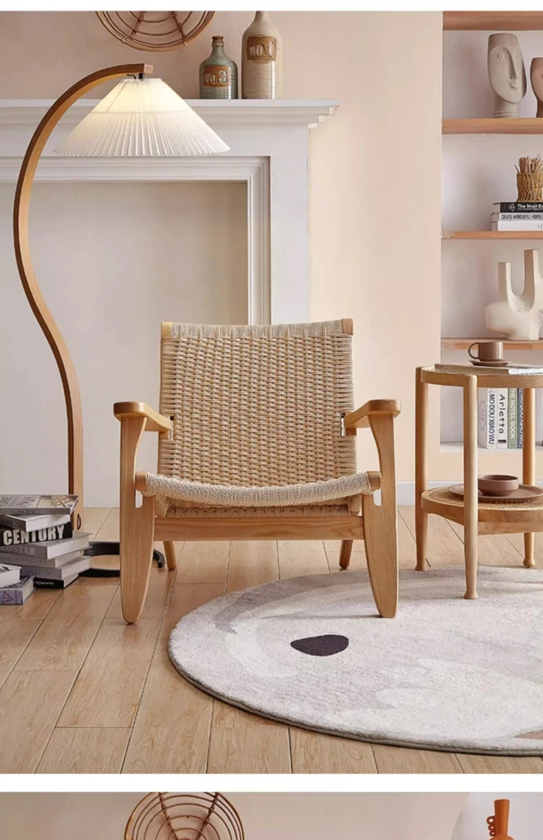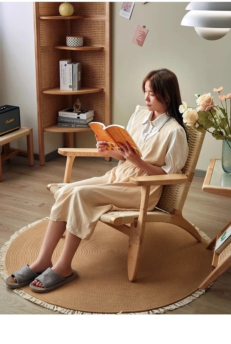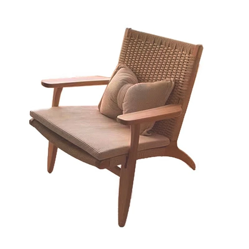 Nordic Style Single Leisure Sofa Chair for Balcony - Minimalist Solid Wood Recliner with Armrests, Perfect for Hotels and Cozy Living Rooms