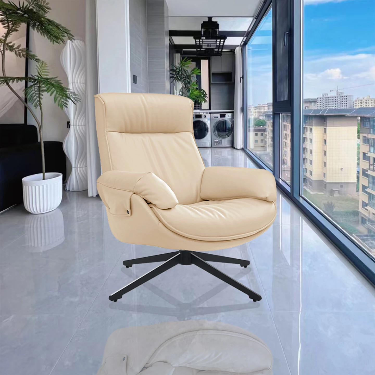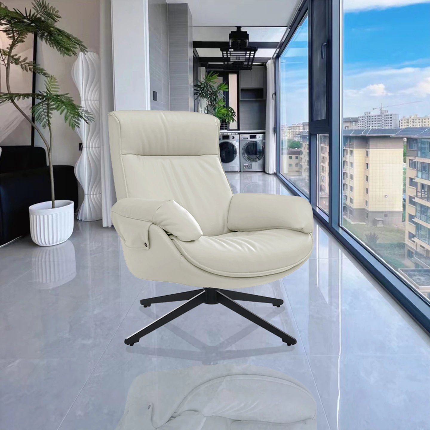 Milk White contact surface top layer cowhide Rotate single chair