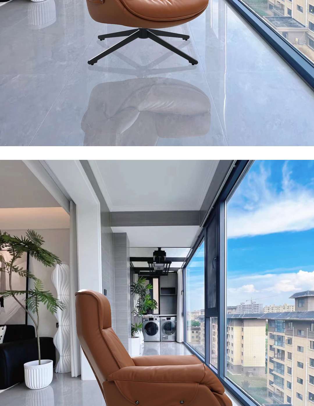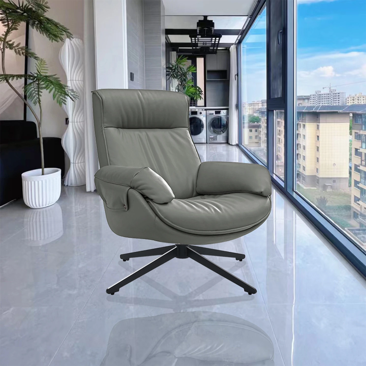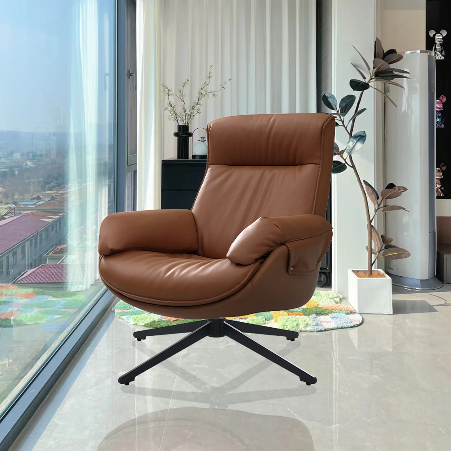 Custom color contact surface top layer cowhide Rotate single chair