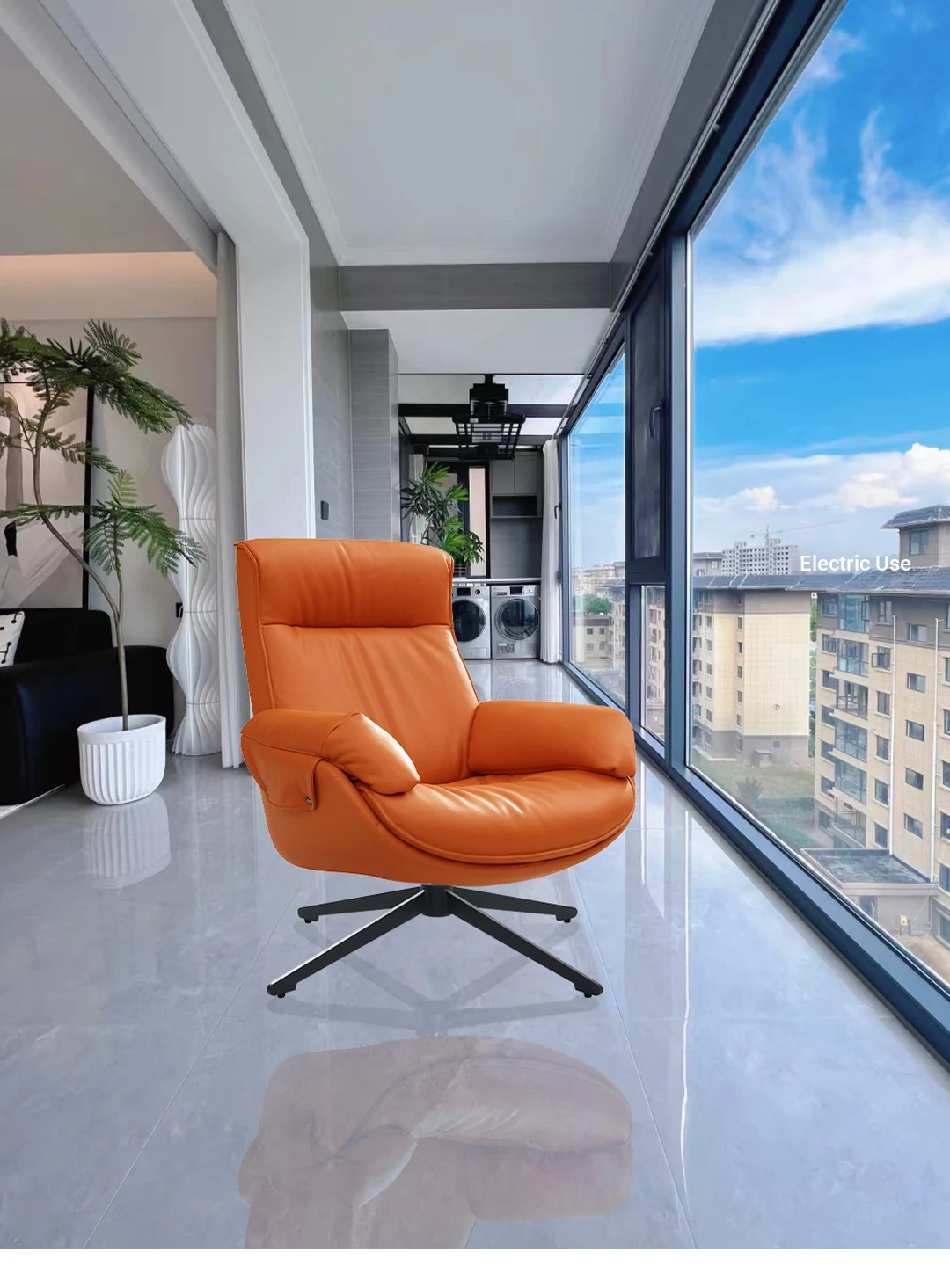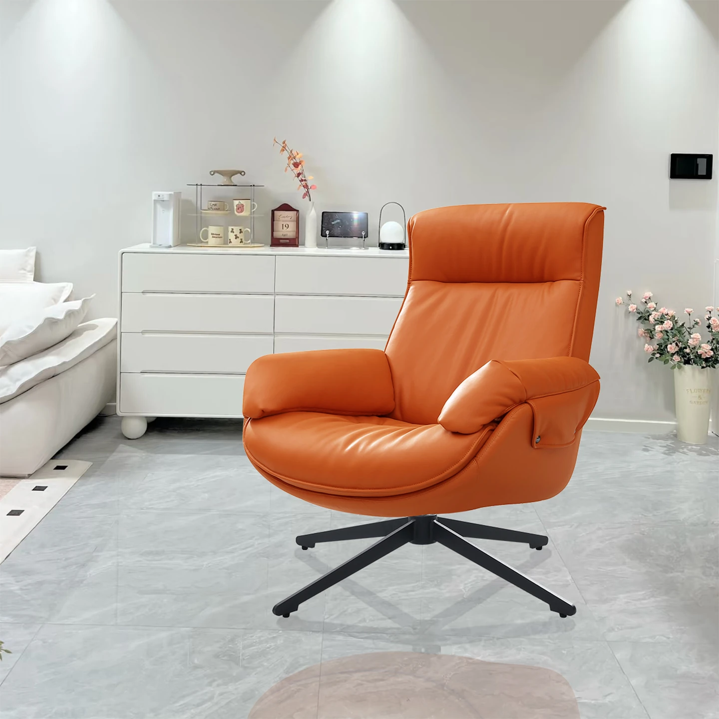 Activating orange contact surface top layer cowhide Rotate single chair