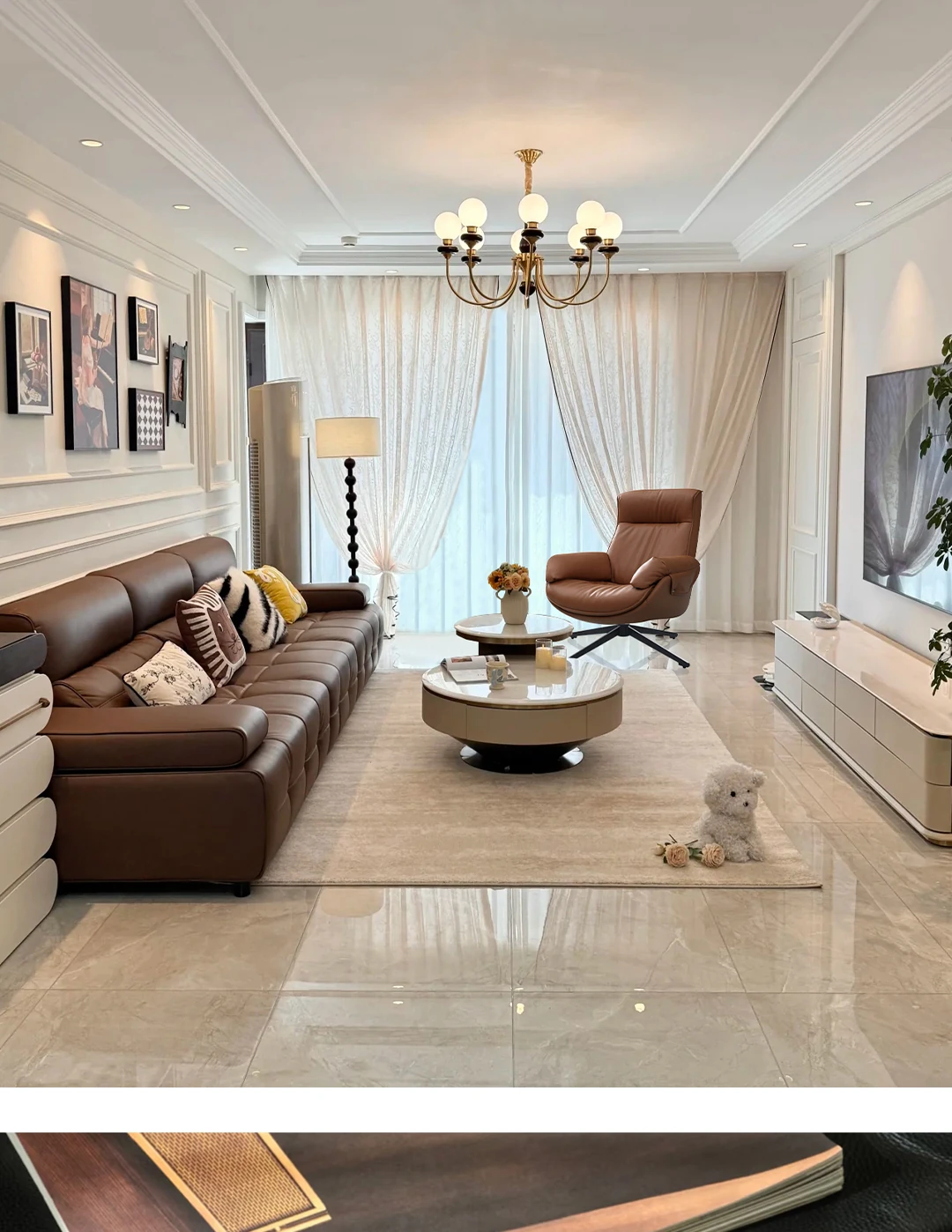 Light Brown contact surface top layer cowhide Rotate single chair