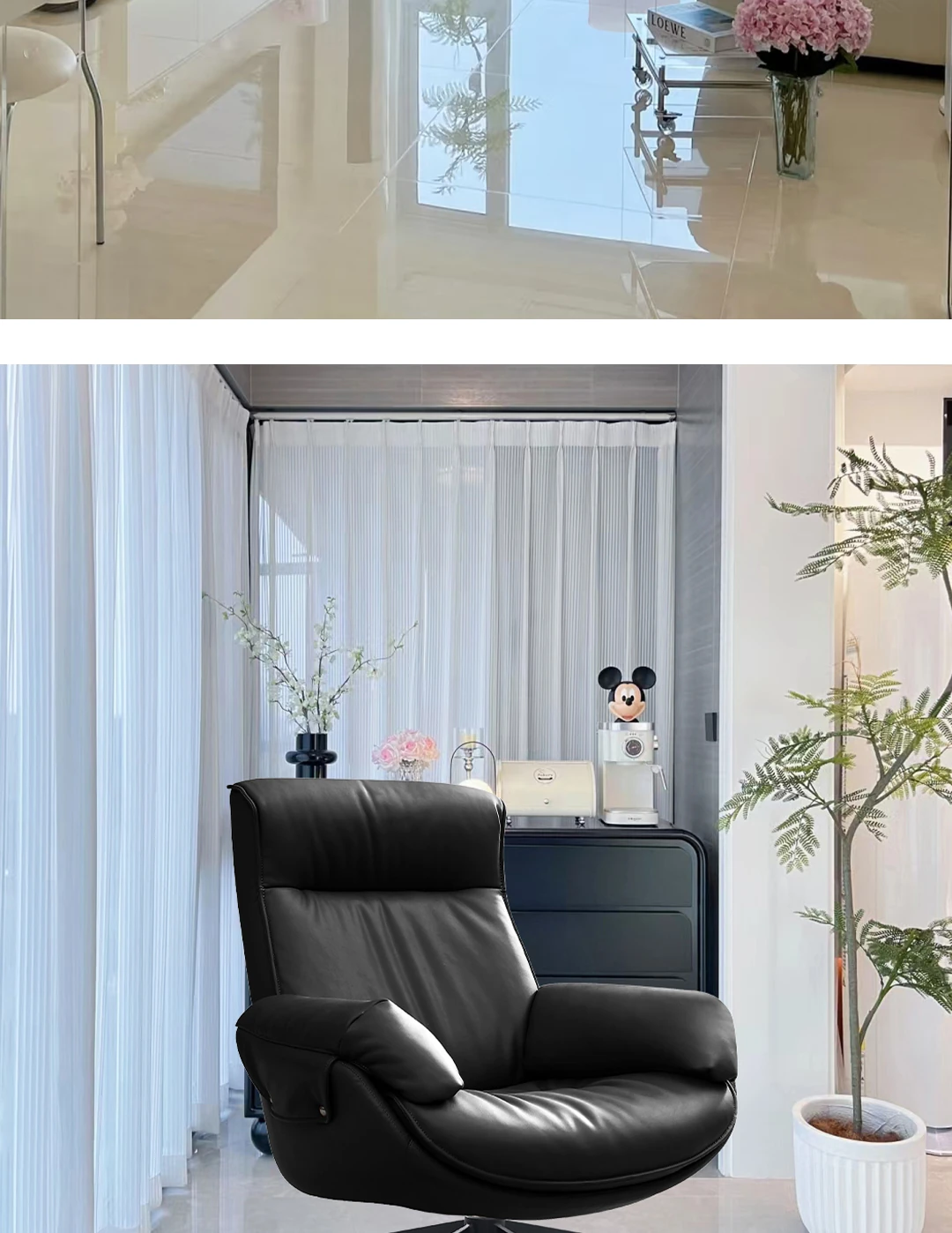 Black contact surface top layer cowhide Rotate single chair