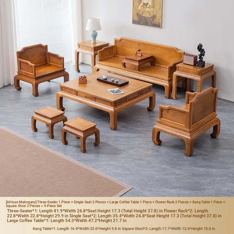 Juzheng sofa (with kang table) +2 square stool 1+1+3 9-piece set
